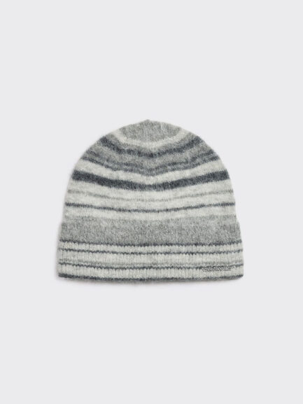Fluffig randig mössa i alpacka