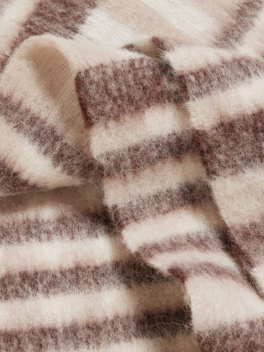 Vi började tillverka våra halsdukar i Florens för ett decennium sedan när vi förälskade oss i en liten fabrik och de traditionella tekniker som användes. Det är här våra halsdukar tillverkas än idag. Vår Aster Open Tasels-halsduk är tillverkad med en Tableau-teknik med ett klassiskt rutmönster och är avslutad med tofskanter.