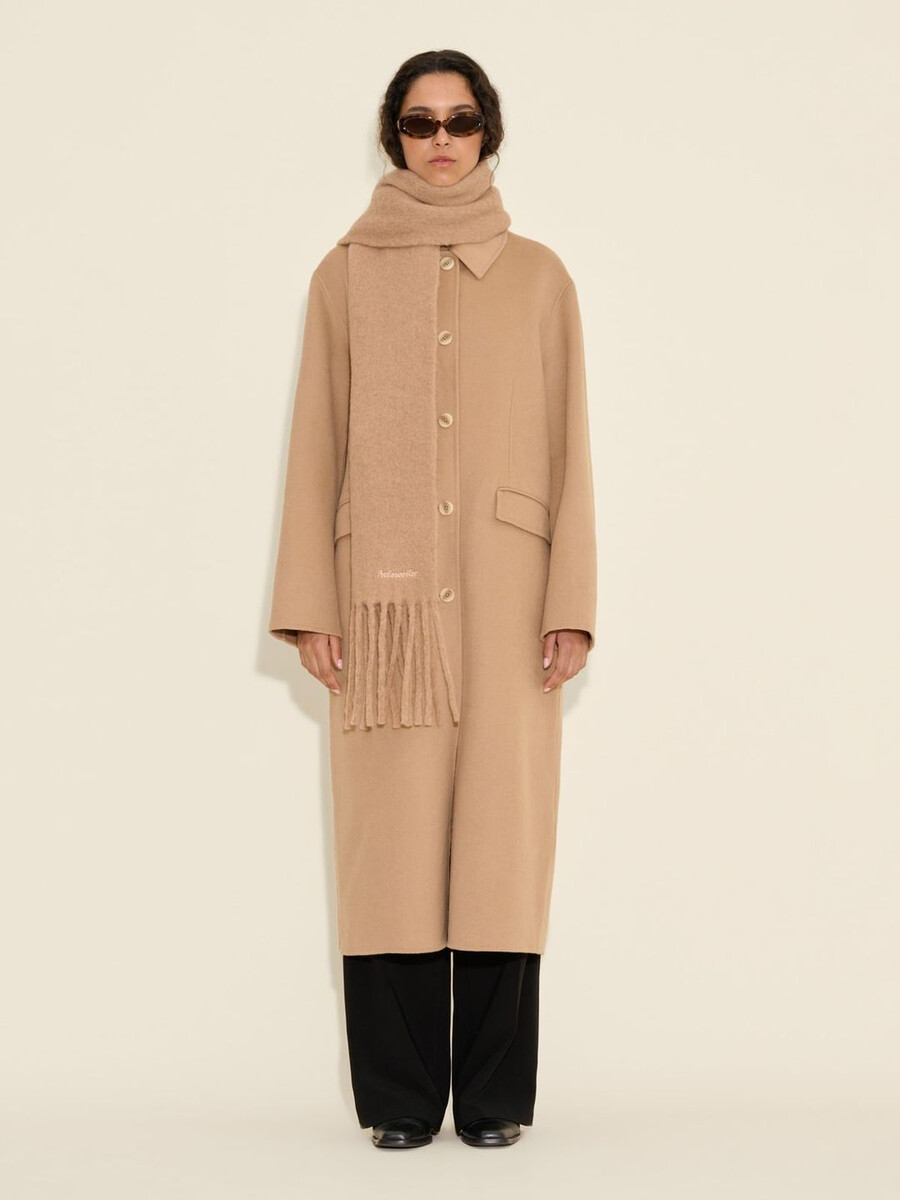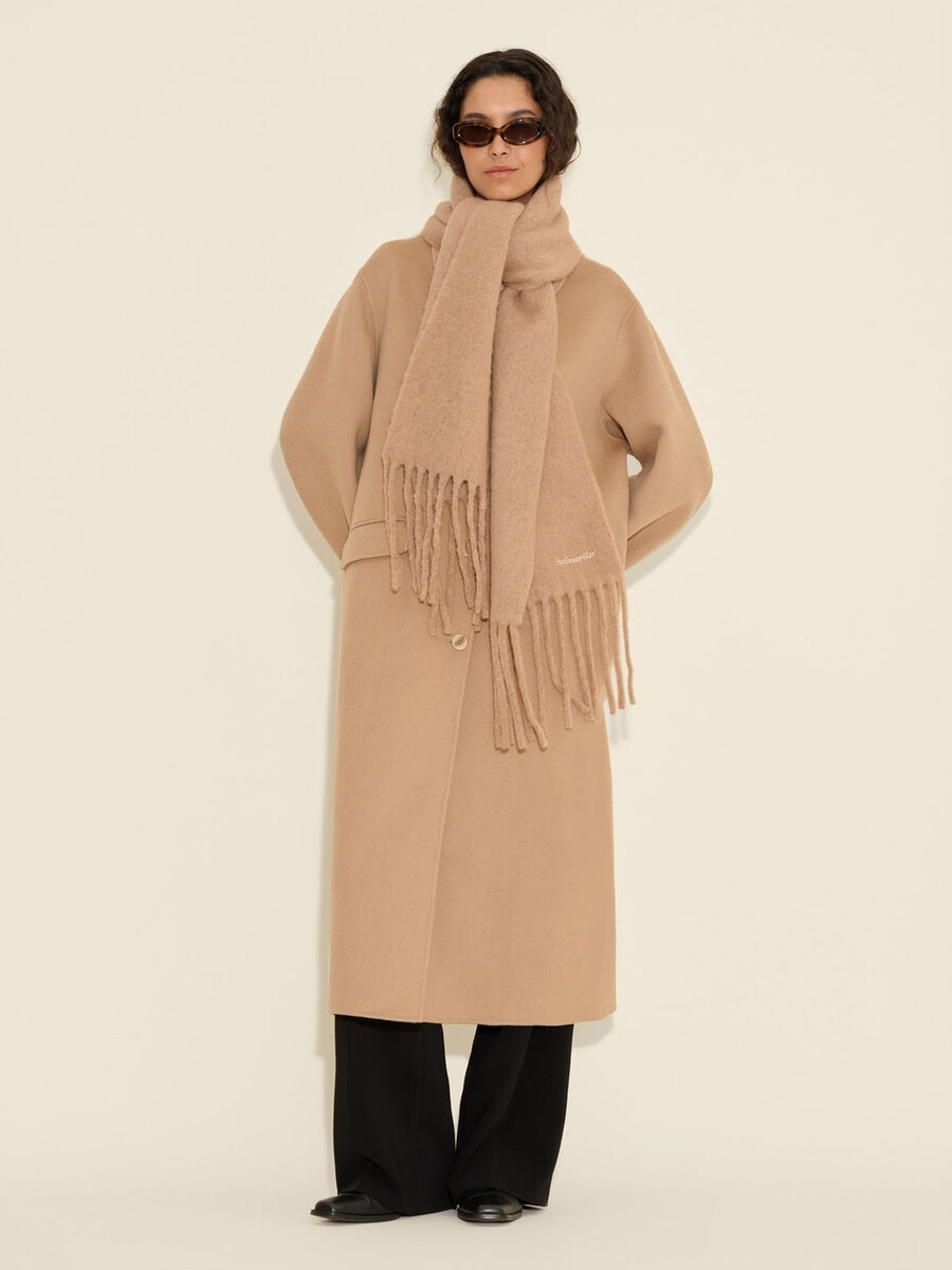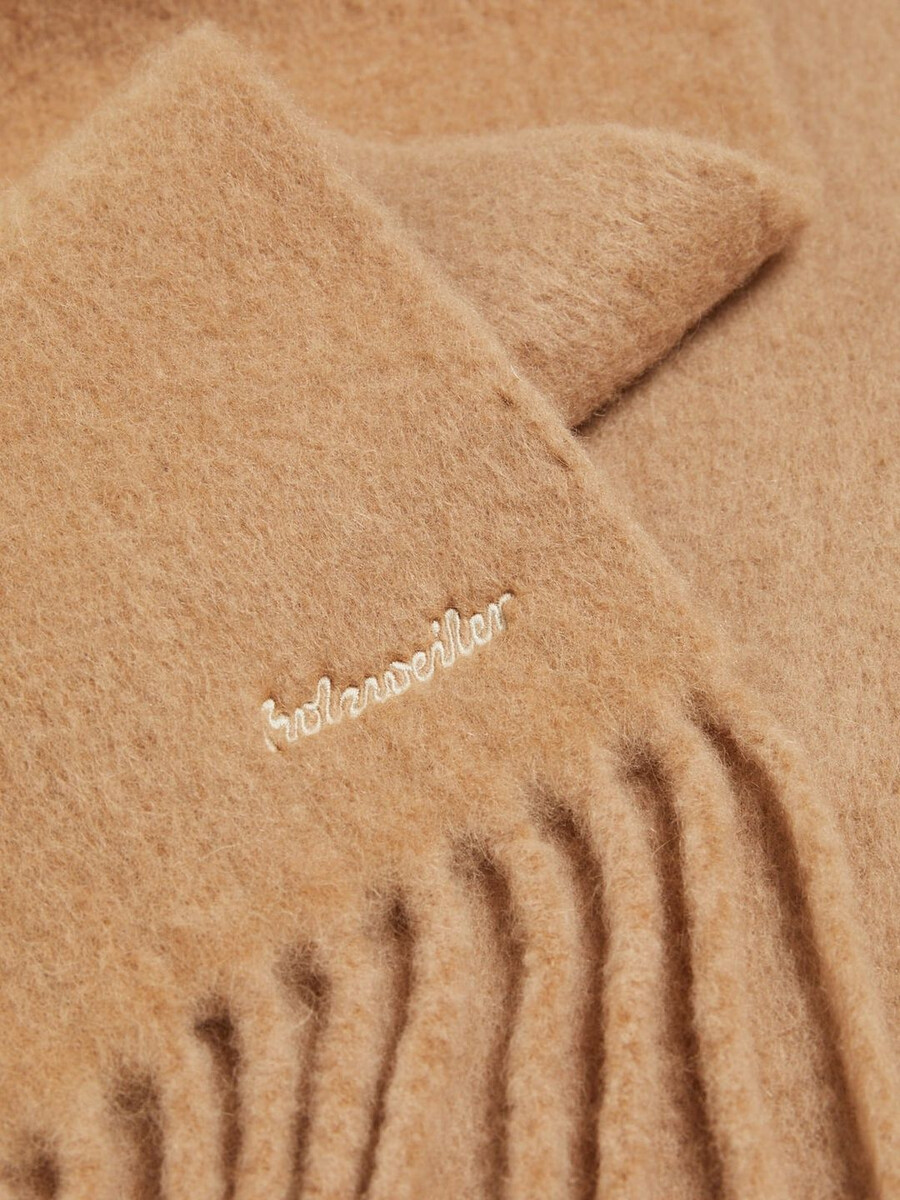 Vår Dipper Solid-halsduk är tillverkad i Italien av en stickad alpackablandning som garanterar ett mjukt grepp. Den har en klassisk design med fransade kanter och en logotyp broderad i det nedre hörnet.