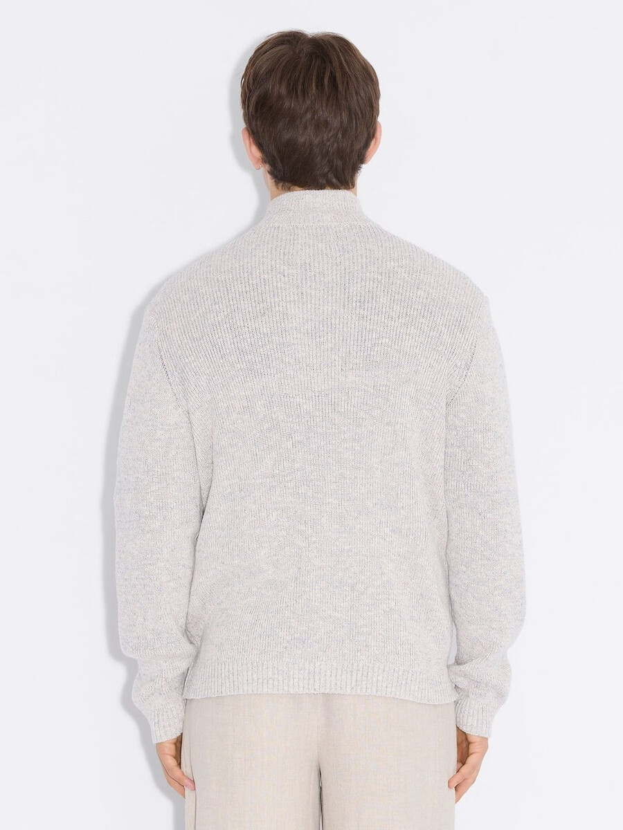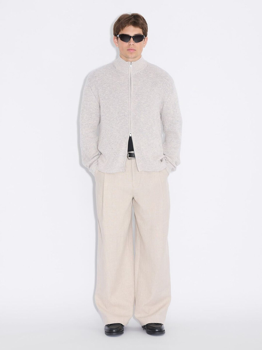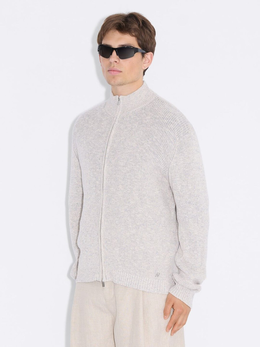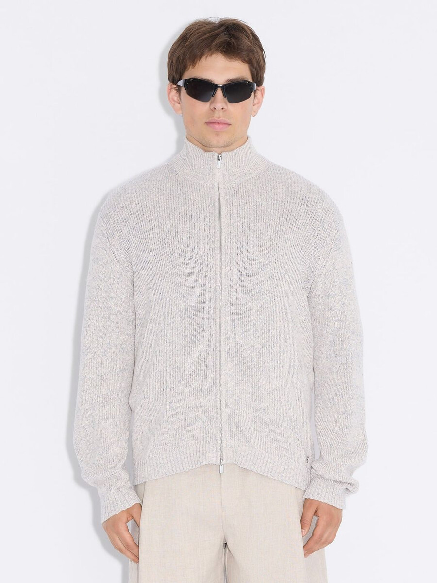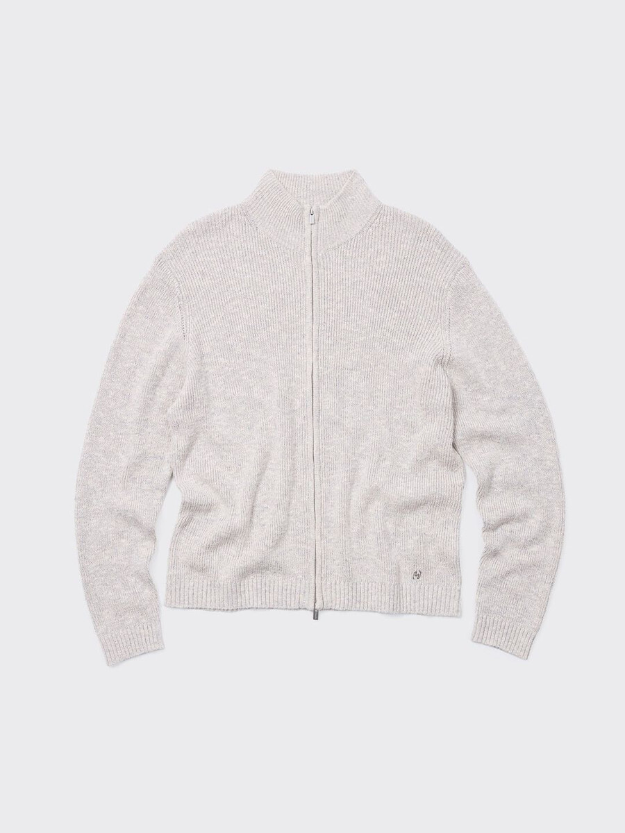 Vår Atlantic Zip-kofta är tillverkad av en bekväm blandning av linne och bomull. Den stängs med dragkedja framtill och har hög halsringning och ribbade muddar.