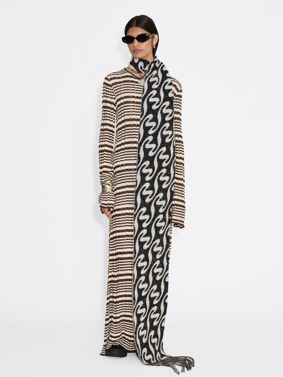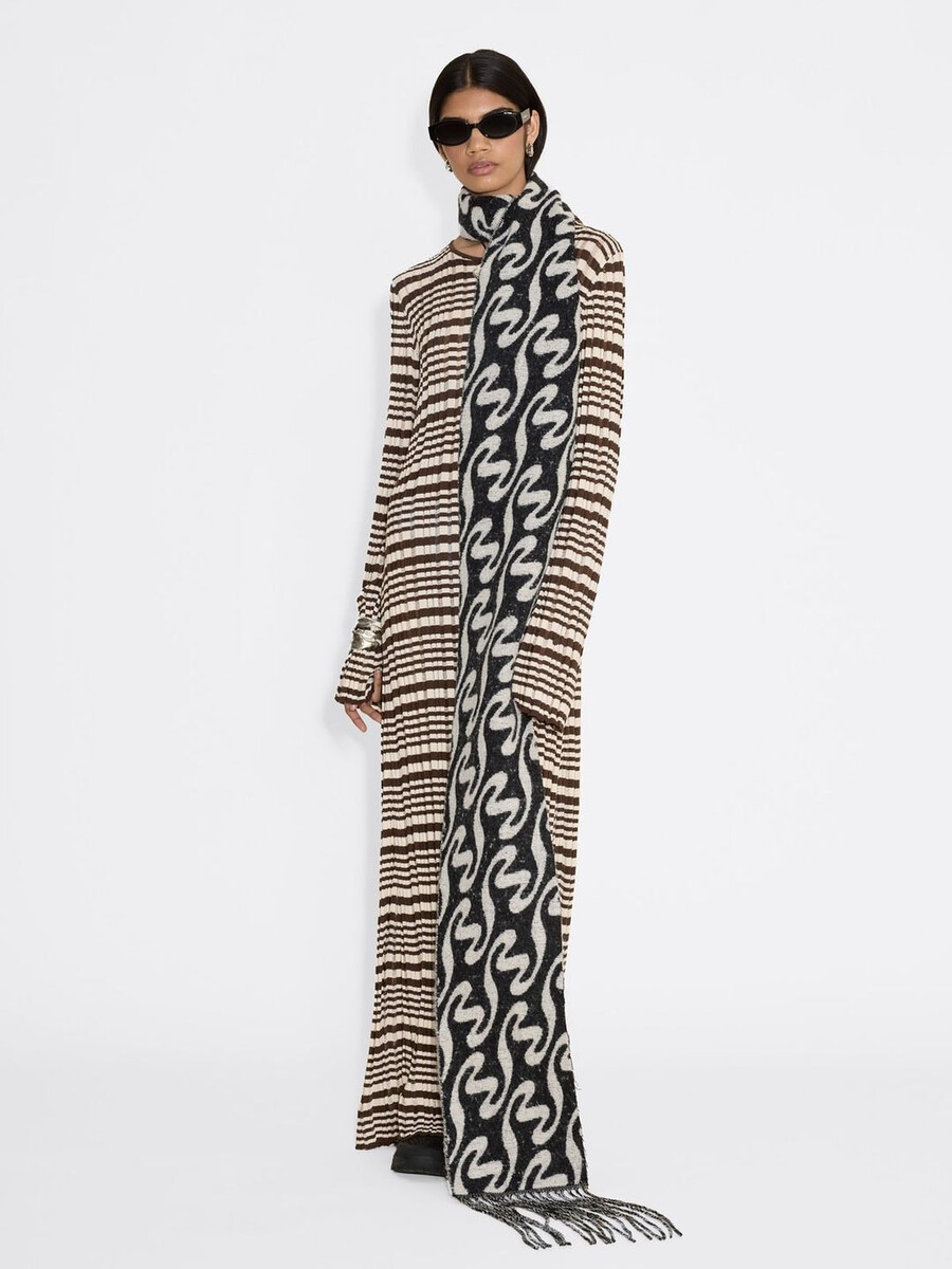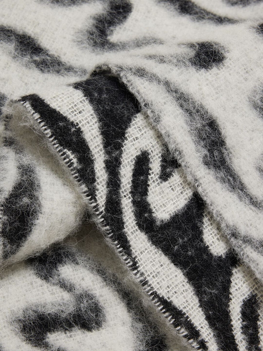 Vi började tillverka våra halsdukar i Florens för ett decennium sedan när vi förälskade oss i en liten fabrik och de traditionella tekniker som användes. Det är här våra halsdukar tillverkas än idag. Vår Bambino XS-halsduk är tillverkad med en Tableau-teknik som skapar ett rutmönster på ena sidan, och den är avslutad med fransade kanter.