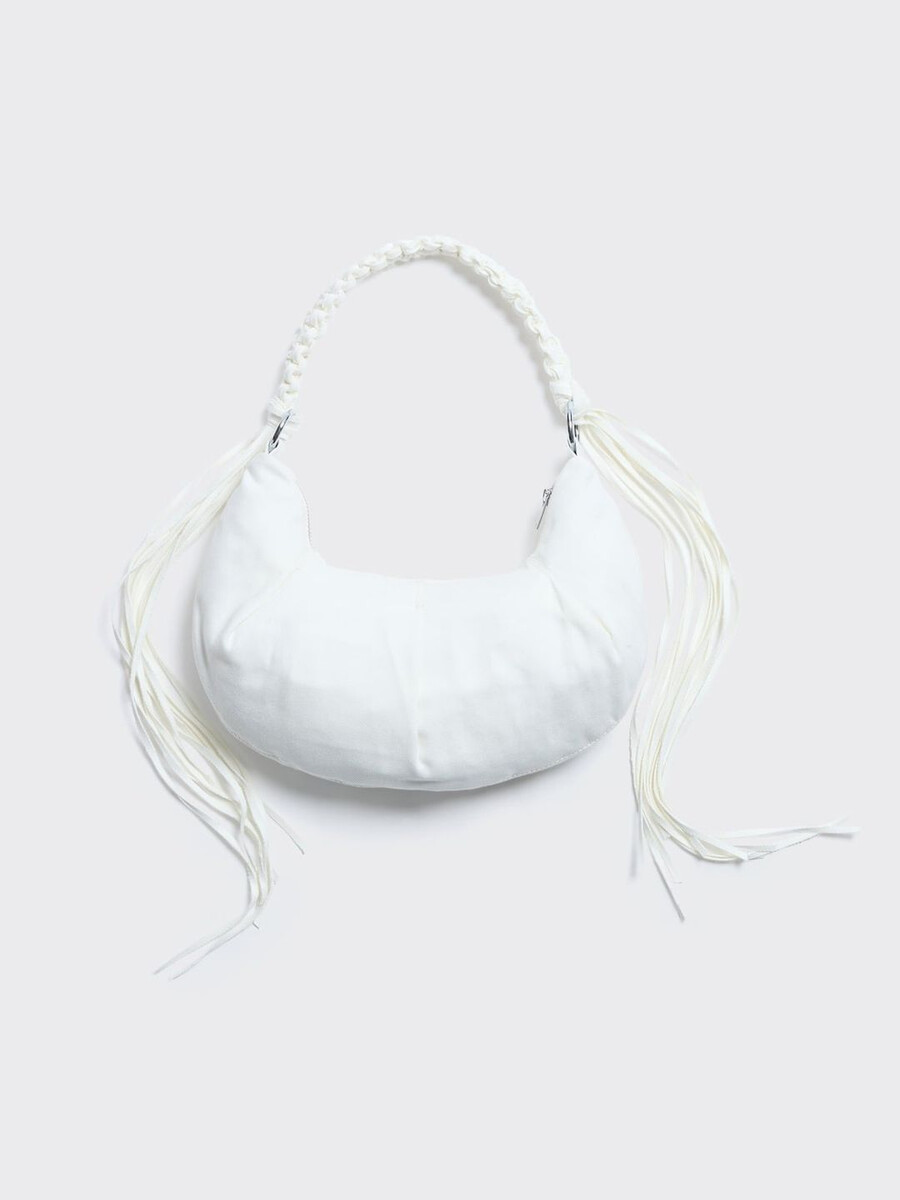 Cocoon Small Denim-väskan har en slapp design med veckade detaljer. Den hänger från en flätad axelrem som är avslutad med tofskanter. En dragkedja upptill håller dina nödvändigheter på plats.