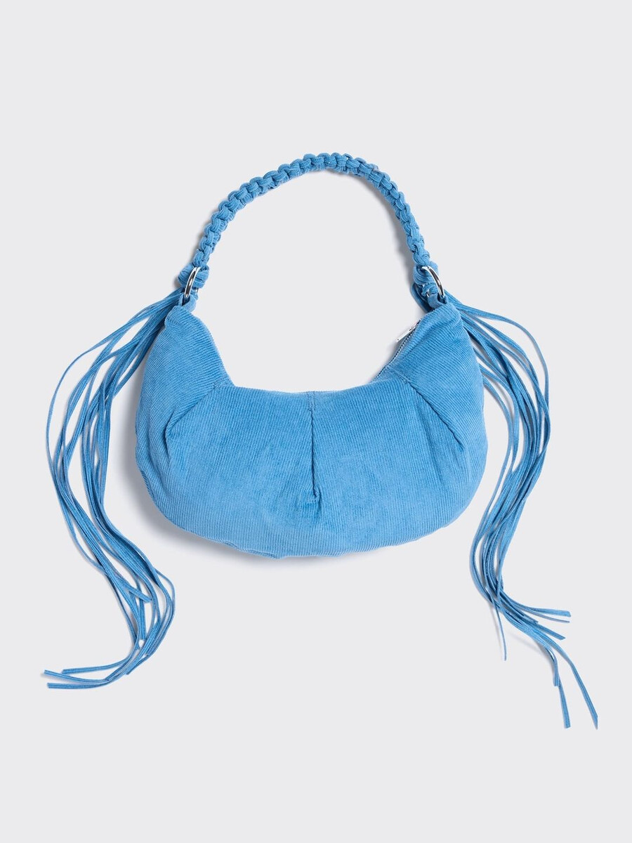 Cocoon Small Corduroy-väskan har en slapp design med veckade detaljer. Den hänger från en flätad axelrem som är avslutad med tofskanter. En dragkedja upptill håller dina viktiga saker på plats.