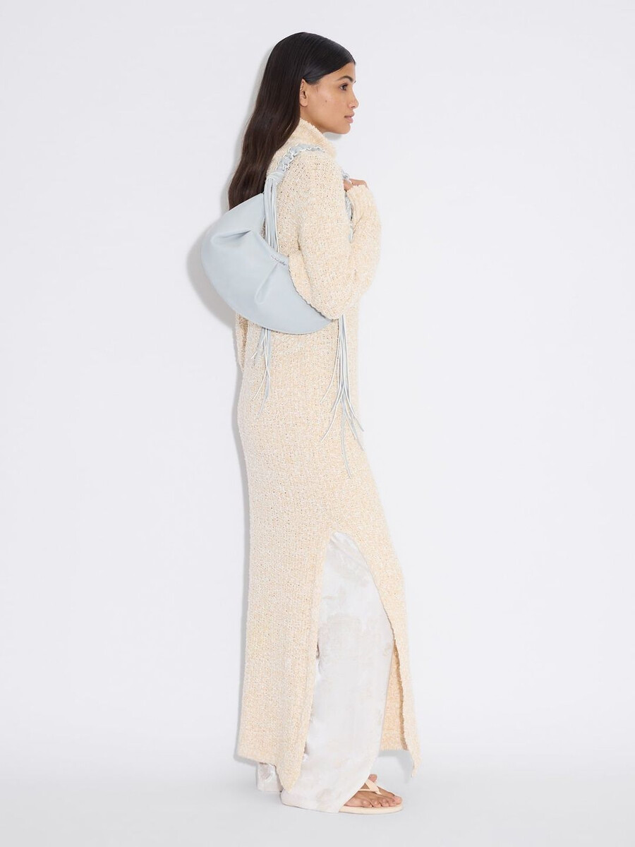 Vår Cocoon Small-väska är tillverkad av konstläder och har en lös design med skrynkliga detaljer. Den hänger i en flätad axelrem med tofsar. En dragkedja upptill håller dina viktigaste saker på plats.