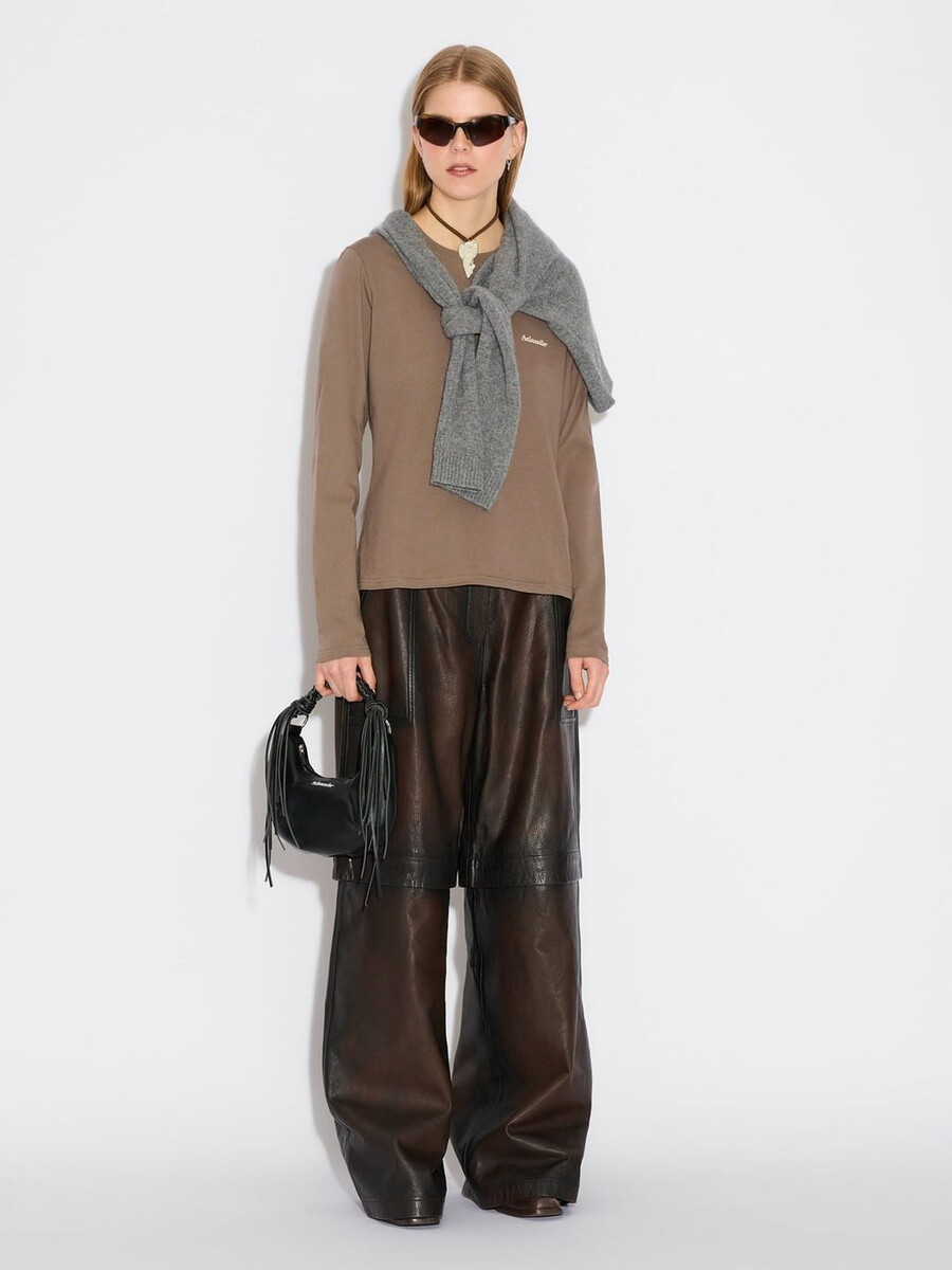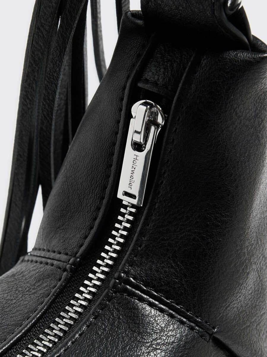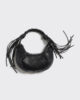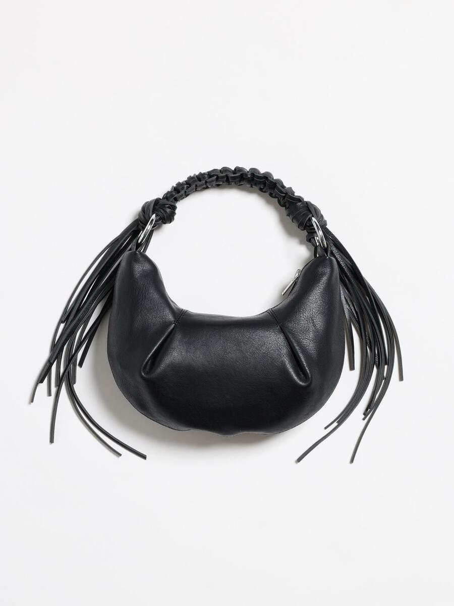 Vår Cocoon Micro-väska är tillverkad av konstläder och har en slapp design med veckade detaljer. Den har både en axelrem och en flätad axelrem som är avslutad med tofskanter. En dragkedja upptill håller dina viktiga saker på plats.