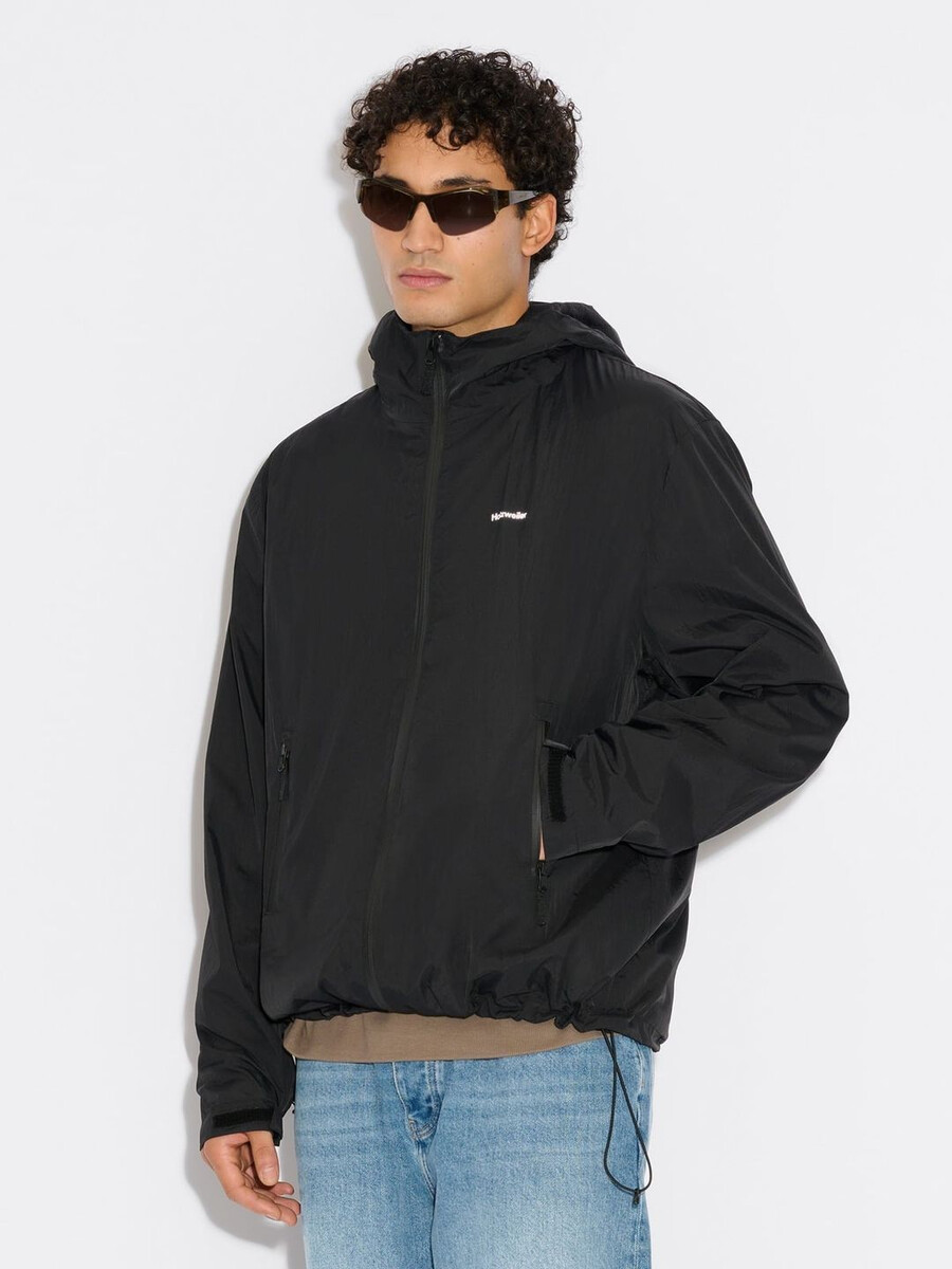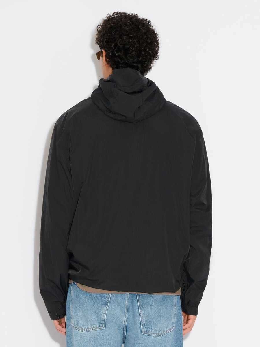 Dev-jackan är tillverkad av ett helfodrat, dubbelskiktat och vattentätt tyg som enkelt kan packas när du är på språng. Den har en justerbar huva, hakskydd, dragskohuva, logotyp på bröstet och vattentäta dragkedjor på framstängningen och fickorna.