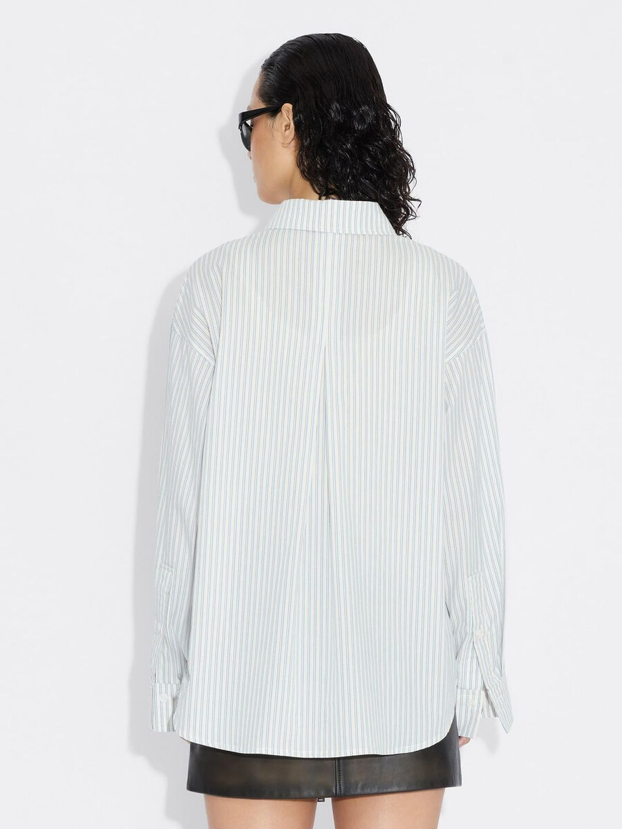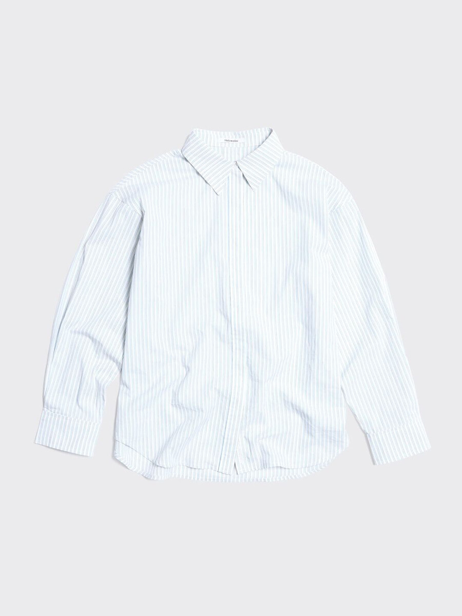Oak-skjortan är tillverkad av ren, lätt bomull med randigt tryck. Den har en avslappnad passform, klassisk krage och knäppt framtill.