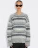 Den fluffiga randiga tröjan med rund hals har en avslappnad form med ett supermjukt handtag i alpackablandning som känns lyxigt mot huden. Med en elegant rand är denna allt-i-ett-tröja det perfekta övergångstillskottet till din stickade trend för att slå ut kylan.