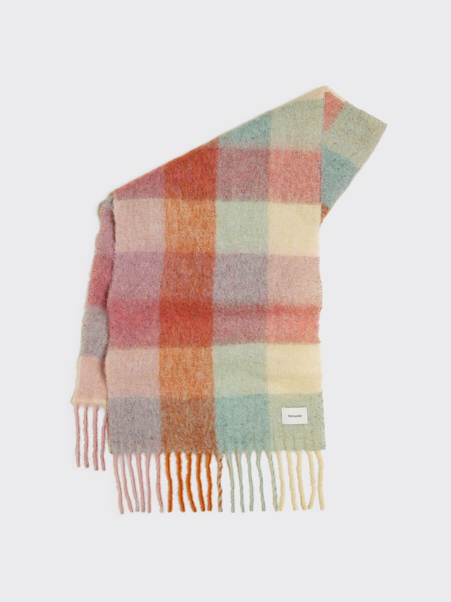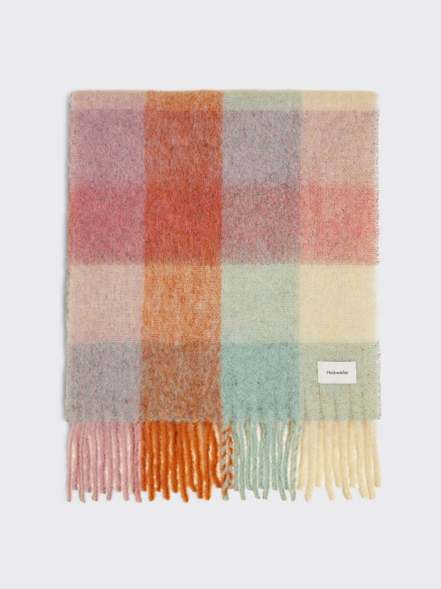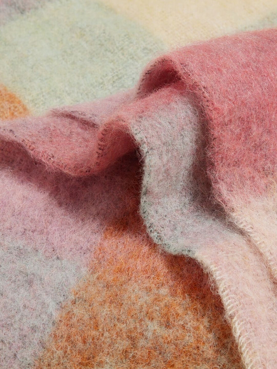Vi började tillverka våra halsdukar i Florens för ett decennium sedan när vi förälskade oss i en liten fabrik och de traditionella tekniker som användes. Det är här våra halsdukar tillverkas än idag. Vår Fresia-halsduk är tillverkad av en taktil bouclé-alpackablandning. Den har ett rutigt tryck och fransade kanter.