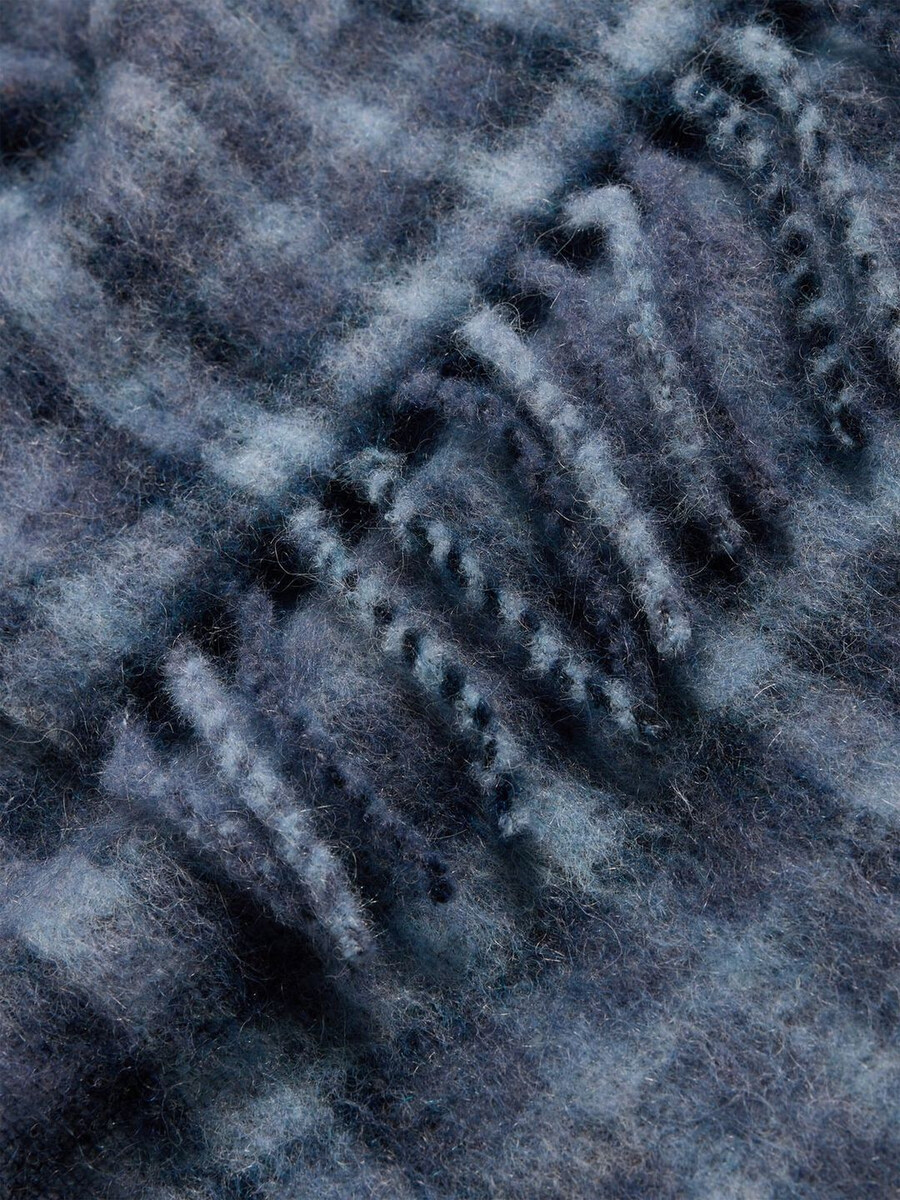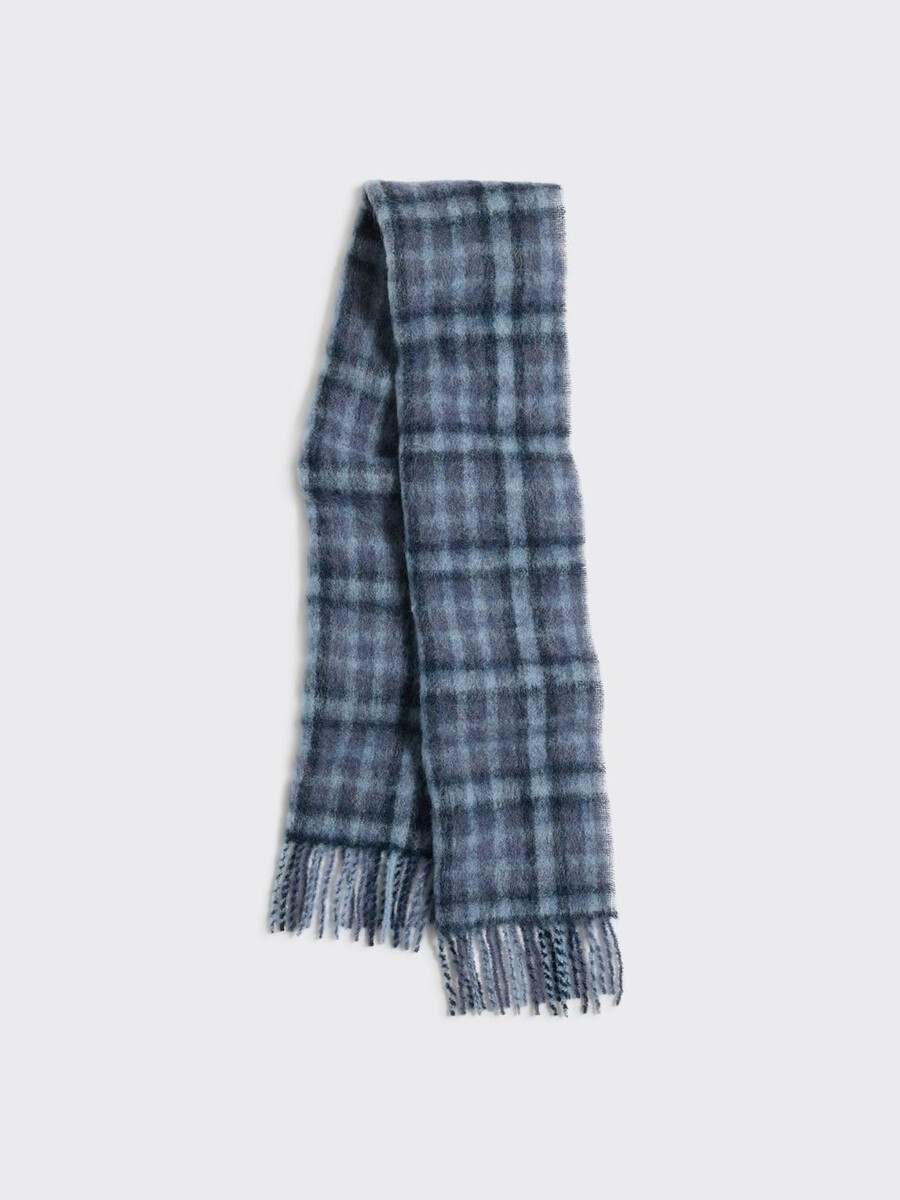 Vi började tillverka våra halsdukar i Florens för ett decennium sedan när vi förälskade oss i en liten fabrik och de traditionella tekniker som användes. Det är här våra halsdukar tillverkas än idag. Vår Fresia-halsduk är tillverkad av en taktil bouclé-alpackablandning. Den har ett rutigt tryck och fransade kanter.