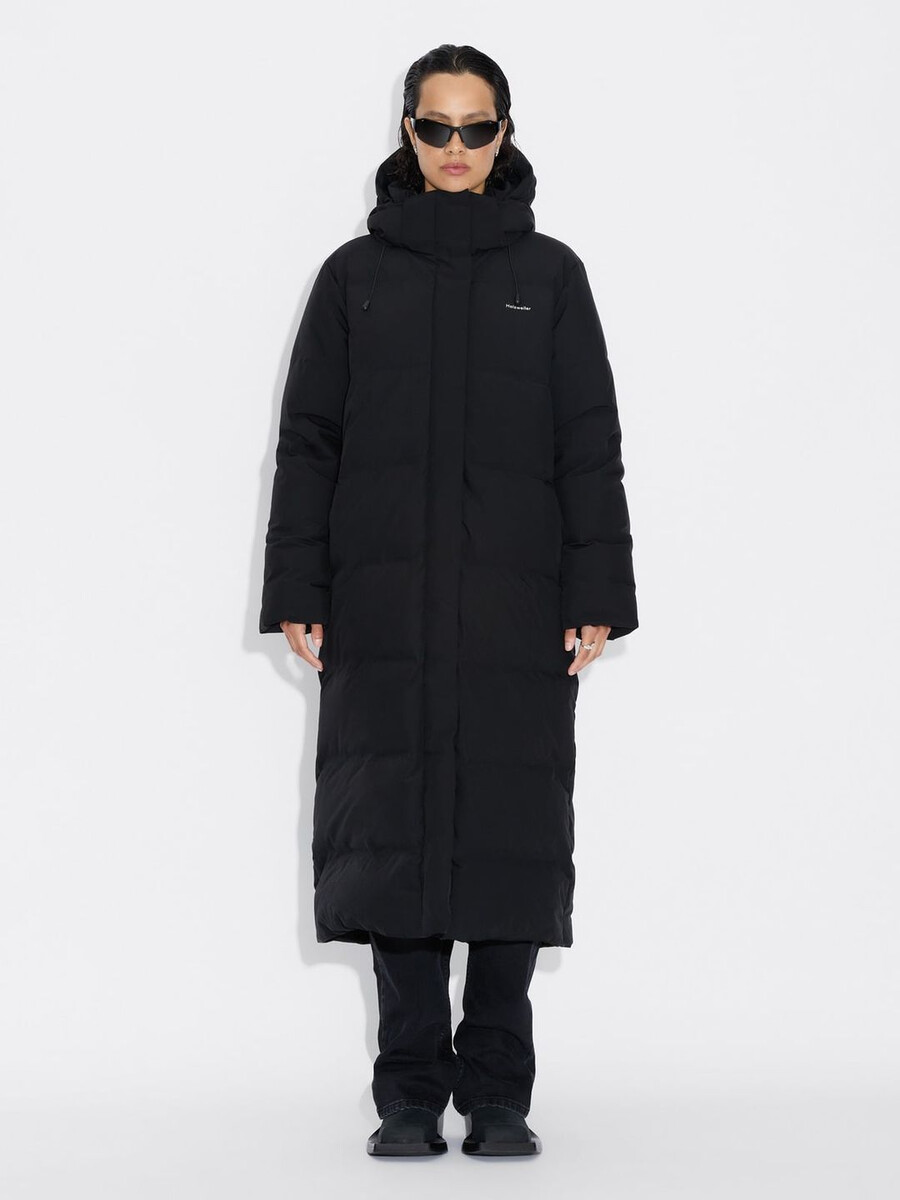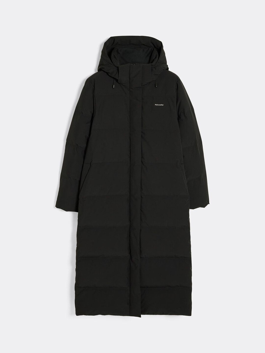 Glittertind dunjackan är tillverkad av ett lager på lager tekniskt tyg och har en design som går nedanför knä, är quiltad och vadderad med RDS-certifierat dun. Den har en avtagbar huva, tvåvägsdragkedja fram, sidfickor med dragkedja, en invändig bröstficka med dragkedja och åtsittande ärmar.