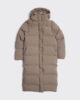 Glittertind dunjackan är tillverkad av ett lager på lager tekniskt tyg och har en design som går nedanför knäet, är quiltad och vadderad med RDS-certifierat dun. Den har en avtagbar huva, tvåvägsdragkedja fram, sidfickor med dragkedja, en invändig bröstficka med dragkedja och åtsittande ärmar med manschett.