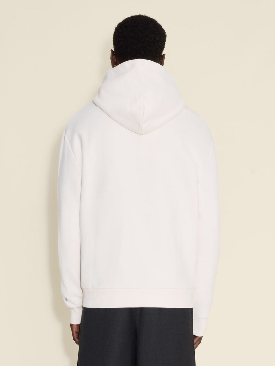 M. Regular Zip-hoodien är tillverkad av en andningsbar ekologisk bomullsblandning med isolerande ribbade kanter. Den har normal passform, dragkedja framtill och en känguruficka.