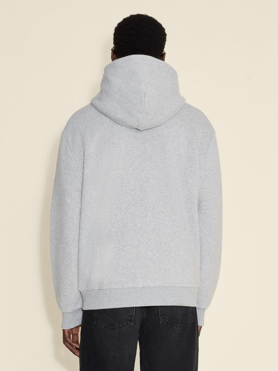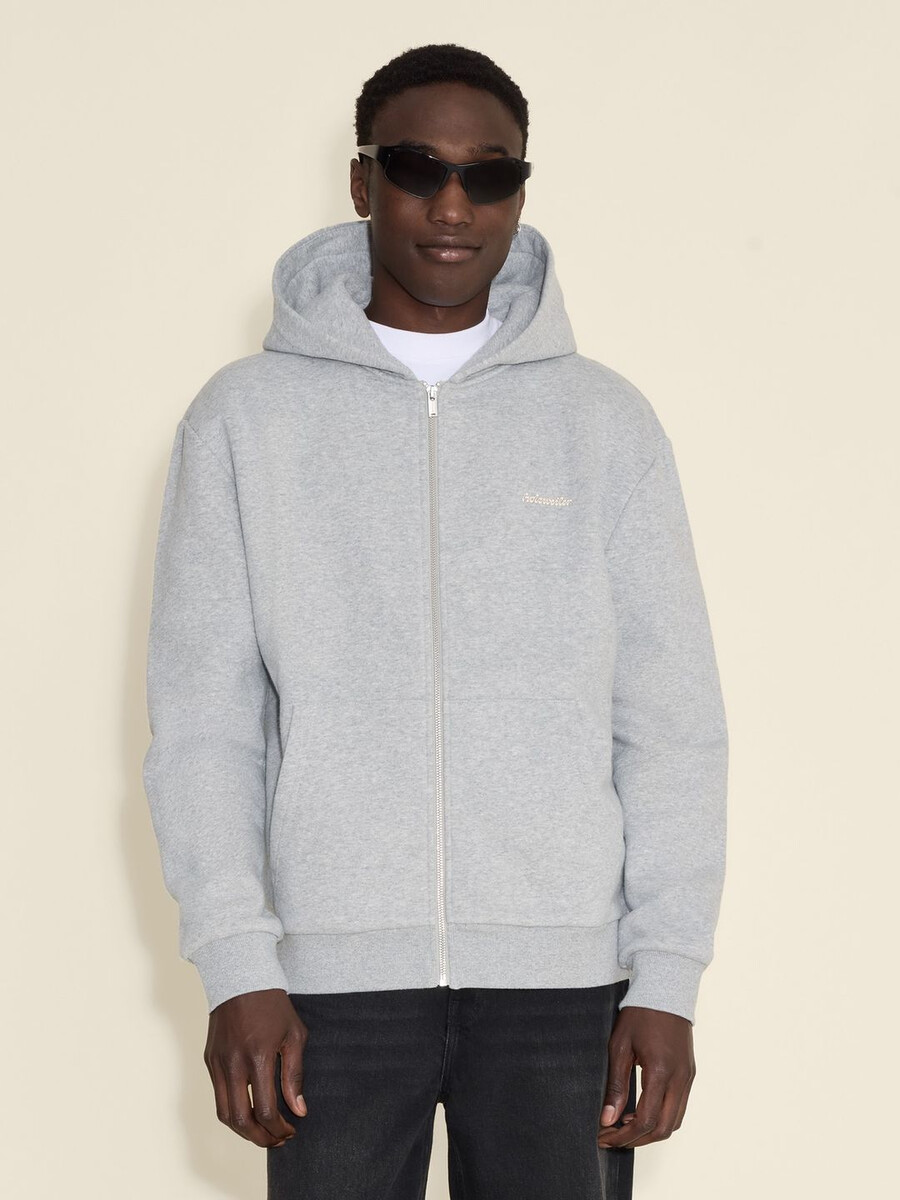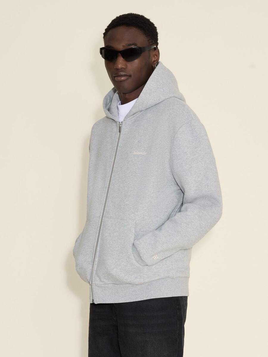 M. Regular Zip-hoodien är tillverkad av en andningsbar ekologisk bomullsblandning med isolerande ribbade kanter. Den har normal passform, dragkedja fram och en känguruficka.