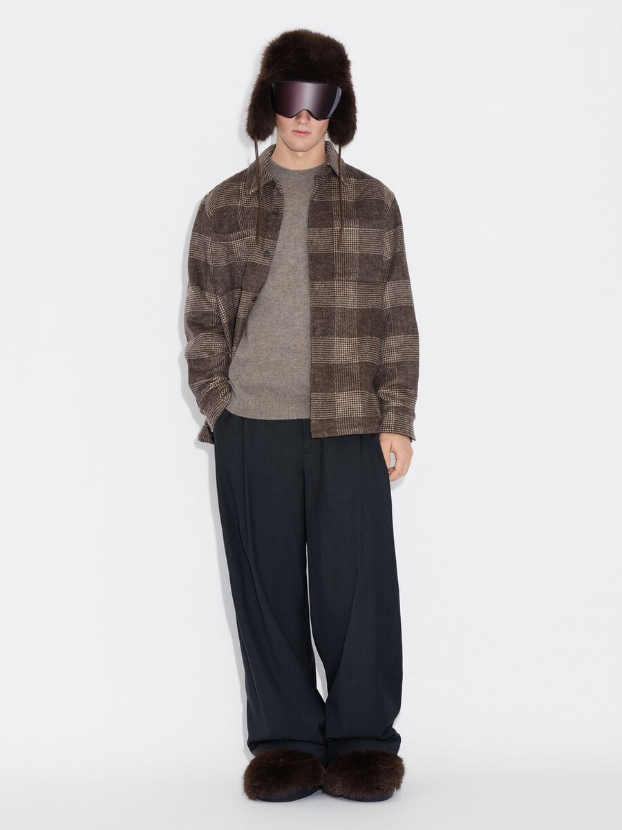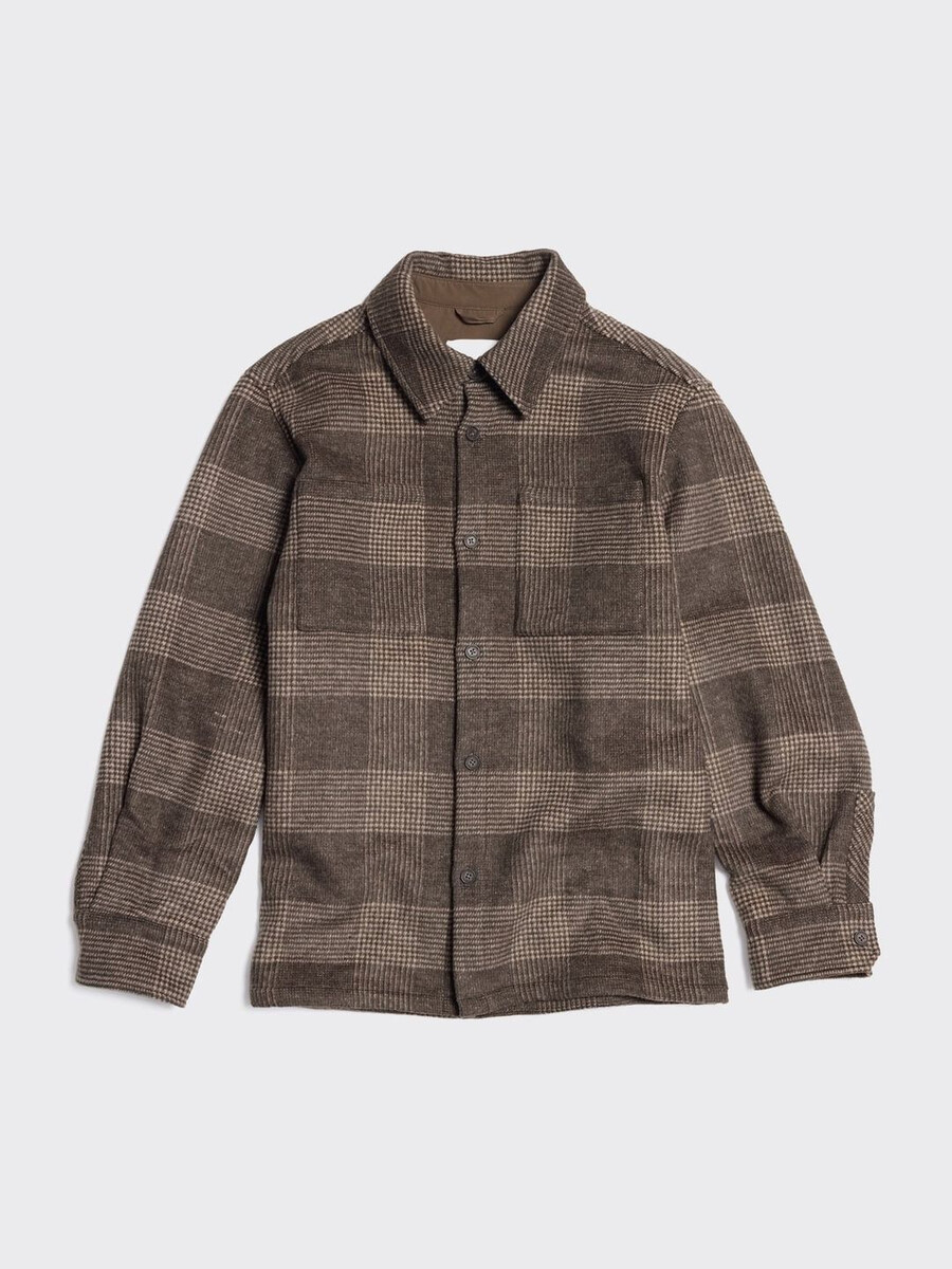 Mildew flanellskjortan är tillverkad av en lätt ullblandning. Designen har en spreadkrage, en knappslå framtill med logotypmärkta knappar, två bröstfickor och nedsänkta axlar.