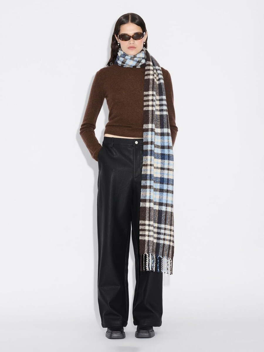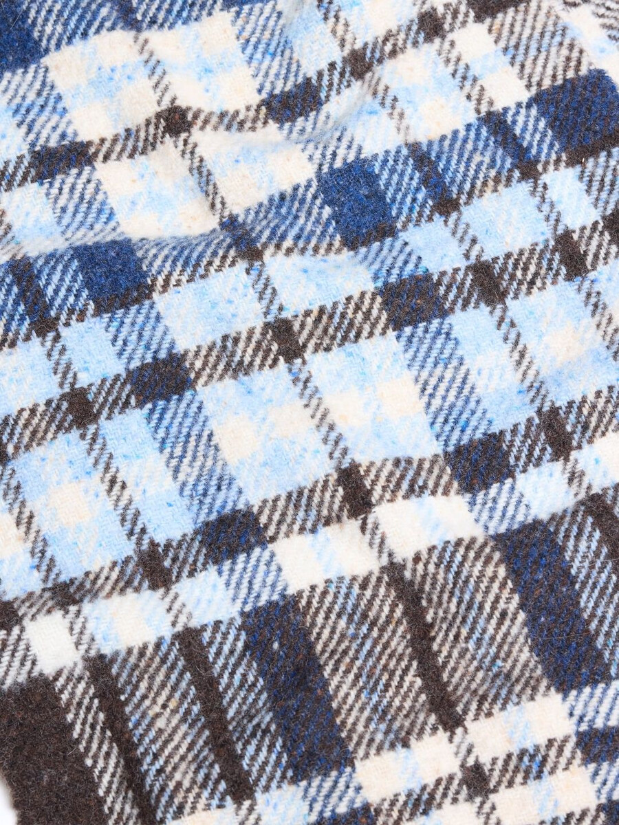 Vi började tillverka våra halsdukar i Florens för ett decennium sedan när vi förälskade oss i en liten fabrik och de traditionella tekniker som användes. Det är här våra halsdukar tillverkas än idag. Vår Pescara-halsduk är tillverkad av en ullblandning med ett rutigt mönster och ribbade kanter.