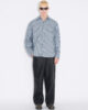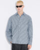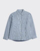 Den pudervadderade skjortan är tillverkad av randig bomull med en fyllning från återvunnet material. Designen har en spreadkrage, knäppt framtill och en bröstficka.