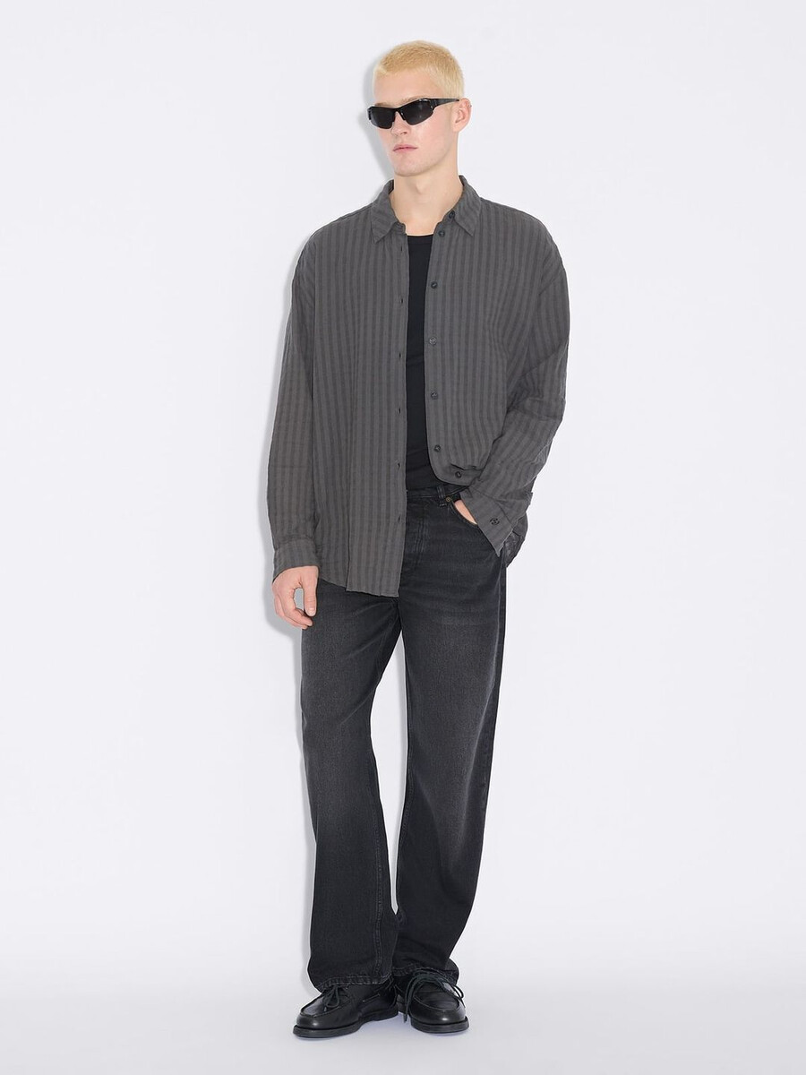 M. Straight-jeansen är en femficksmodell tillverkad av ren ekologisk bomullsdenim. De har en vanlig medelhög midja, ton-i-ton H-logotypbroderi på fickan och raka ben.