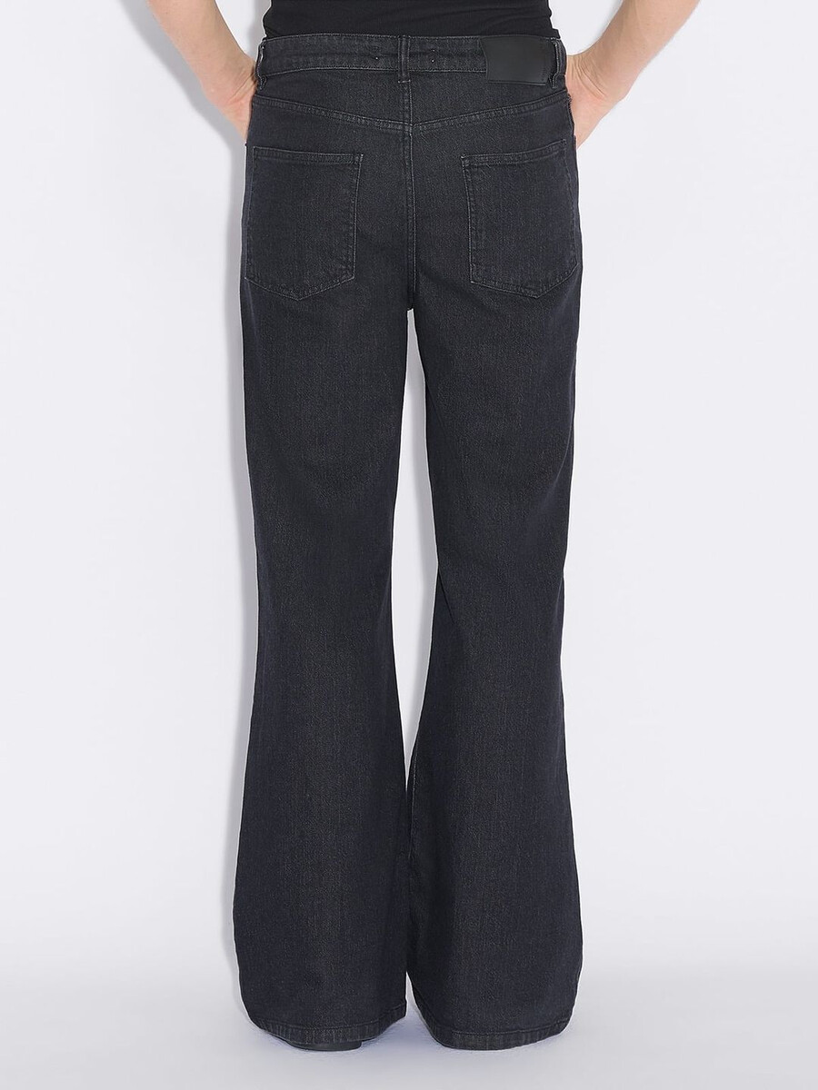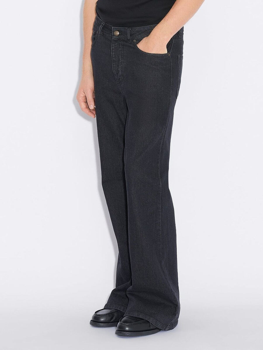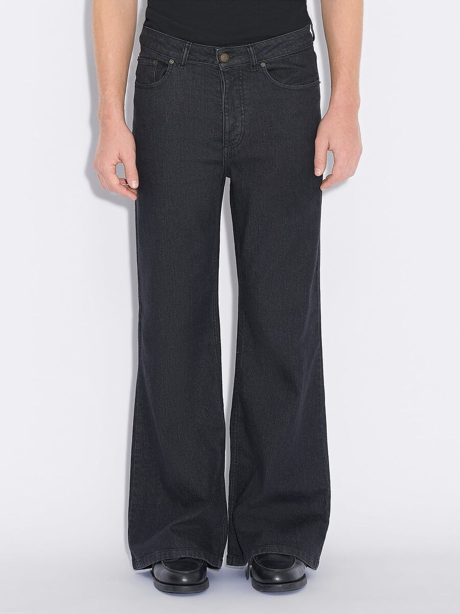 Ram-jeansen kännetecknas av sina distinkta utsvängda ben, är tillverkade av stretchig bomullsdenim och har fem fickor och en logotypmärke baktill på midjebandet.