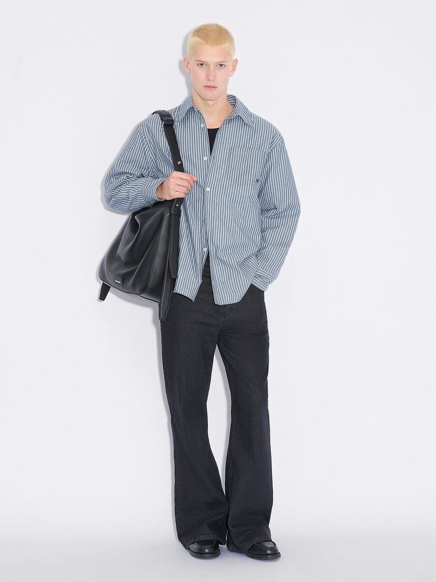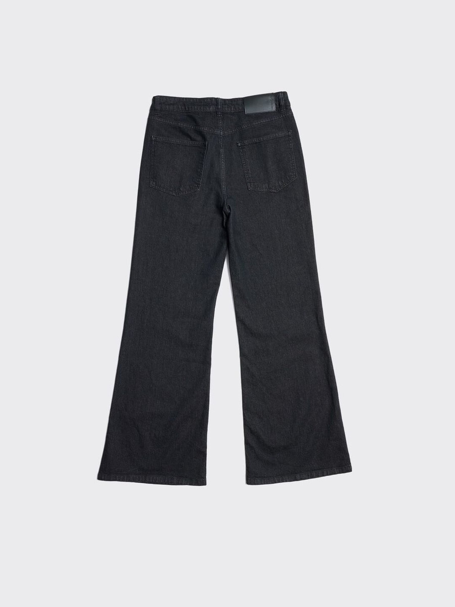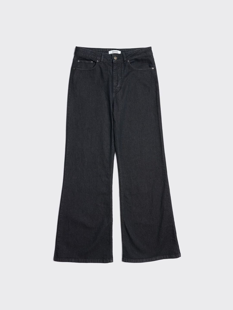 Ram-jeansen kännetecknas av sina distinkta utsvängda ben, är tillverkade av stretchig bomullsdenim och har fem fickor och en logotypmärke baktill på midjebandet.
