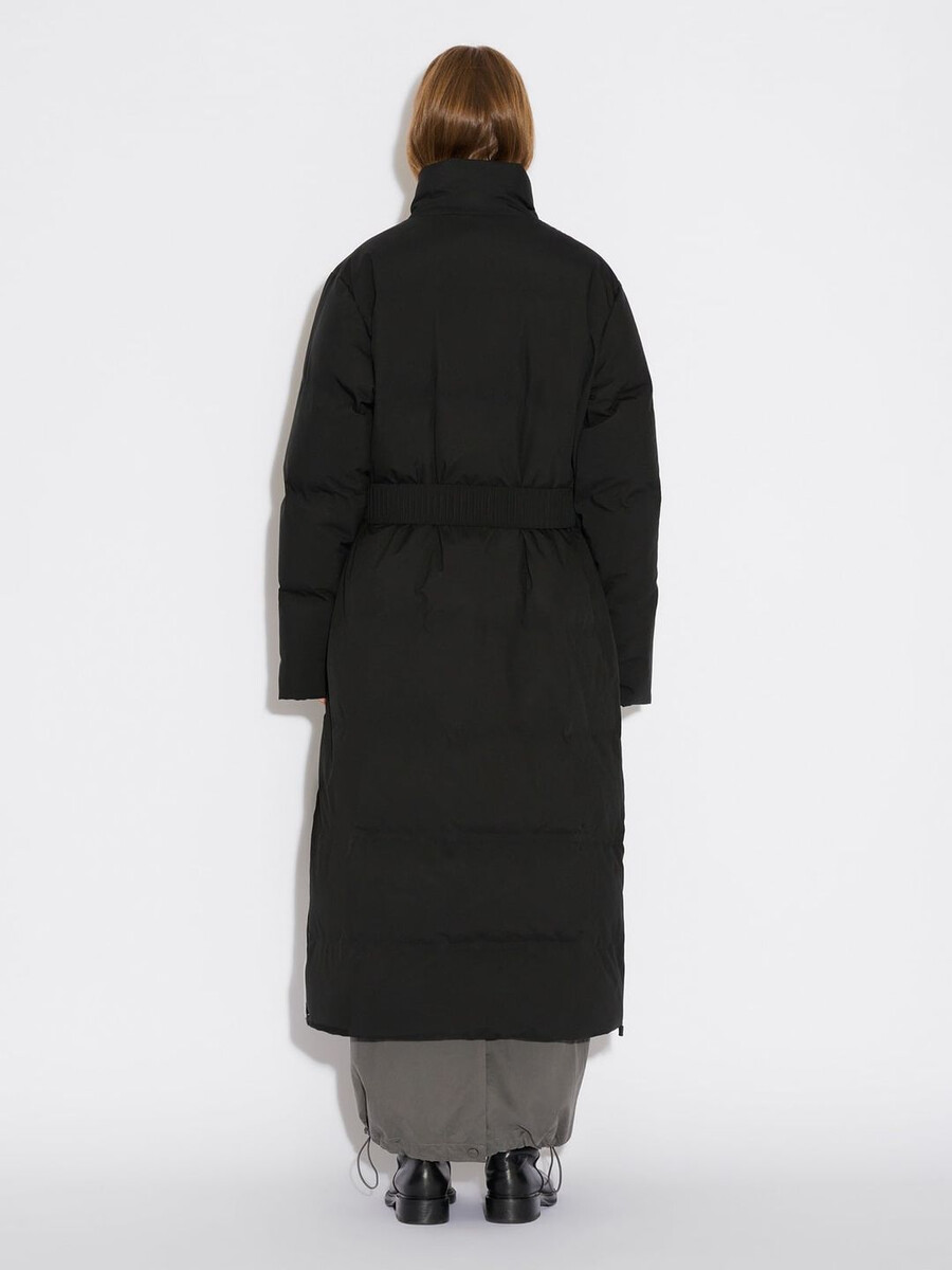 Ramoen Lt Down-jackans lätta dunfyllning gör den idealisk för resor, övergångsväder och vardagliga ärenden. Den har skärp i midjan, dold knäppning fram, logotyptryckt bröst och en hellång fåll. Dess eleganta utseende gör den även lämplig att kombinera med aftonkläder.