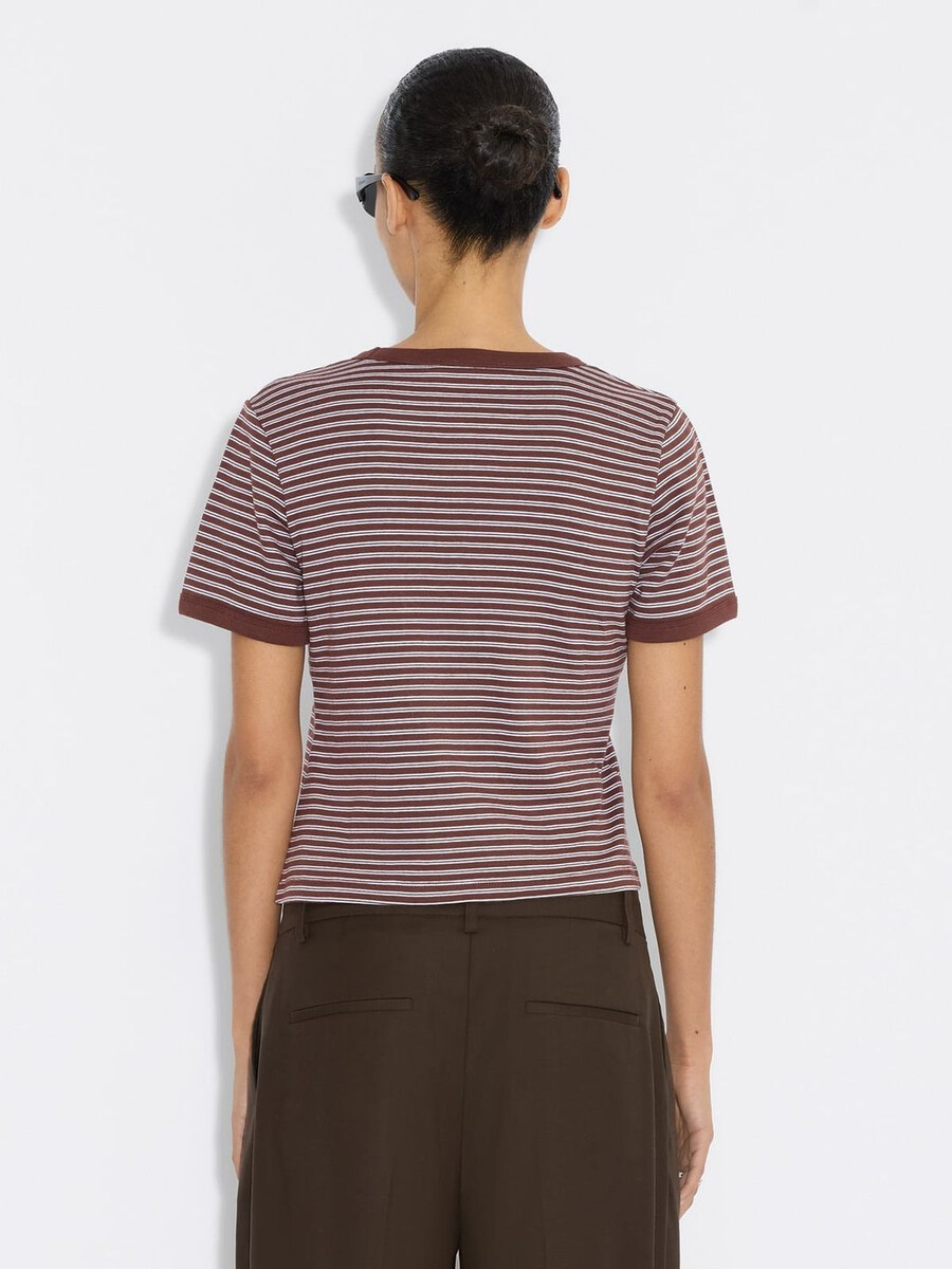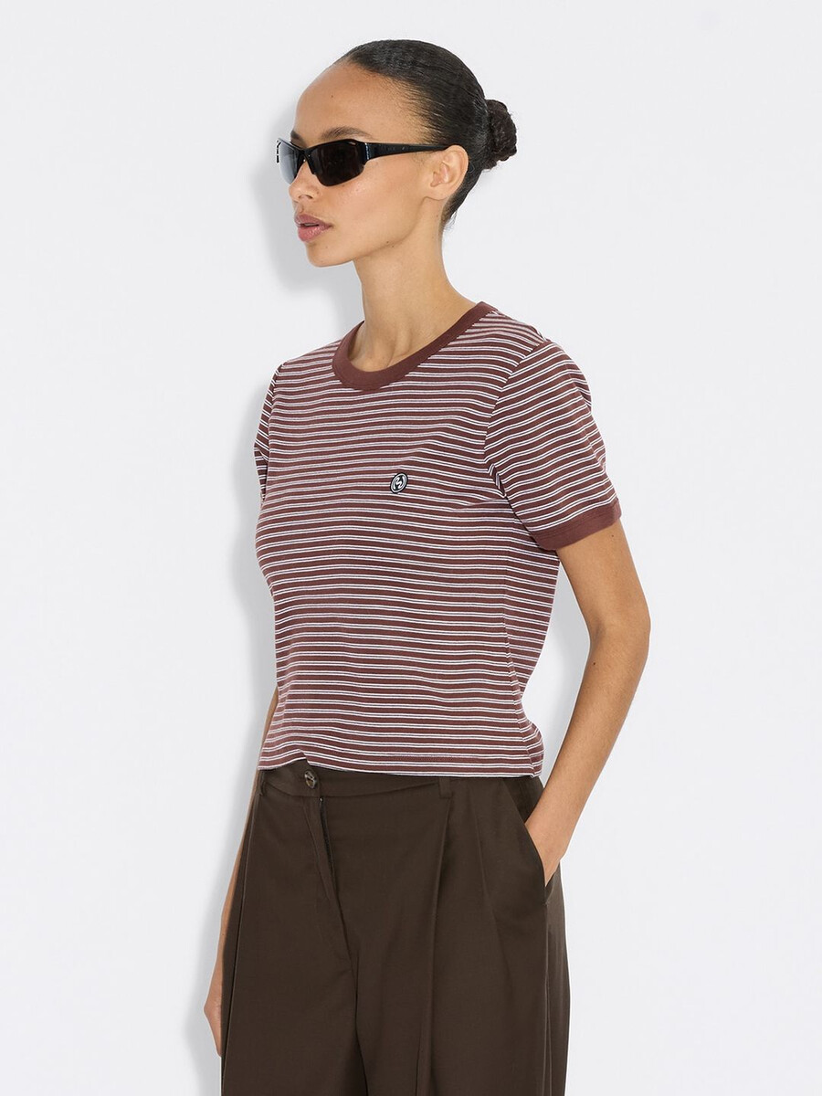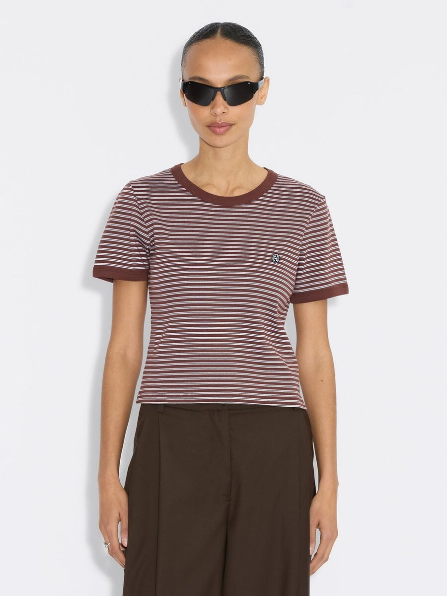 Ingen vardagsgarderob är komplett utan en oumbärlig T-shirt. Kitty Stripe Tee definieras av det tidlösa trycket och den smickrande, figurnära, croppade silhuetten. Kitty är snäll mot planeten och tillverkad av högkvalitativ, ren ekologisk bomull.