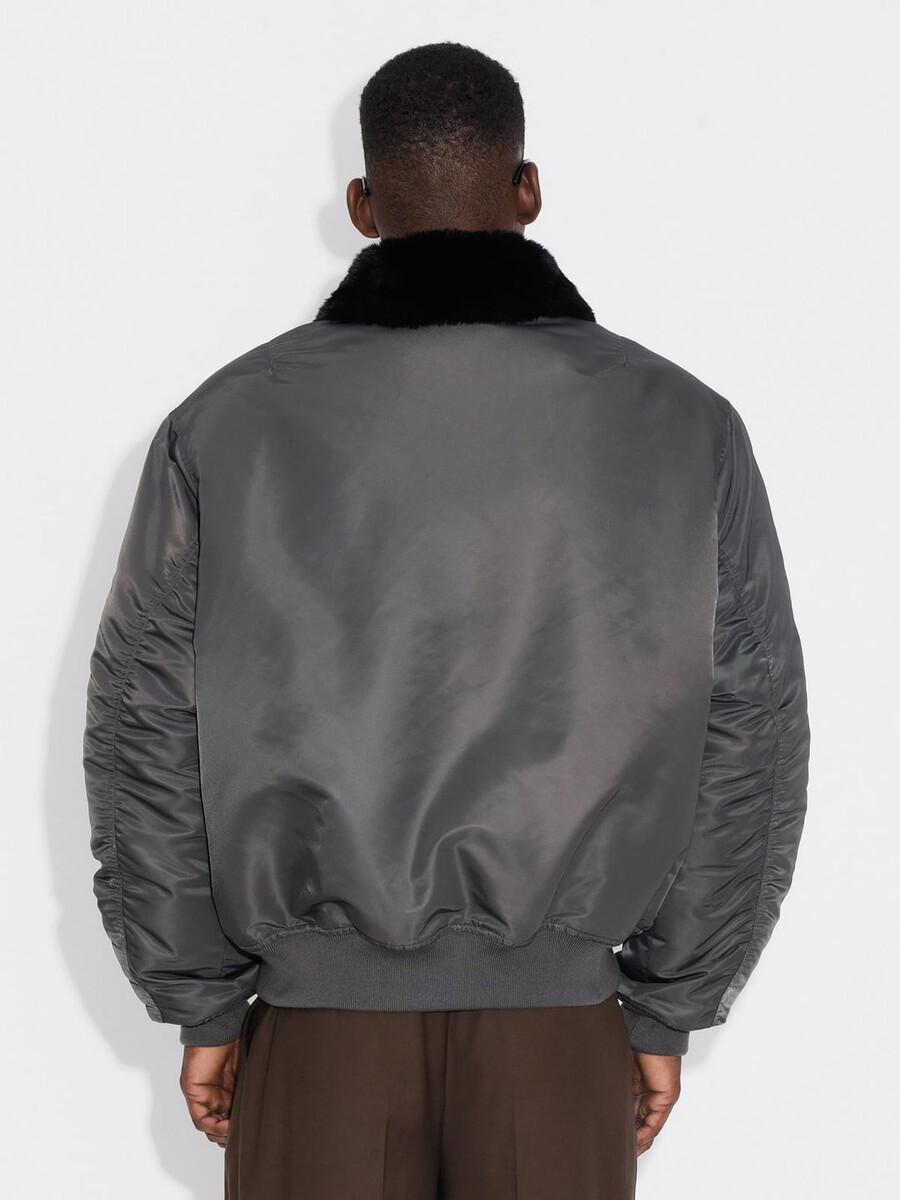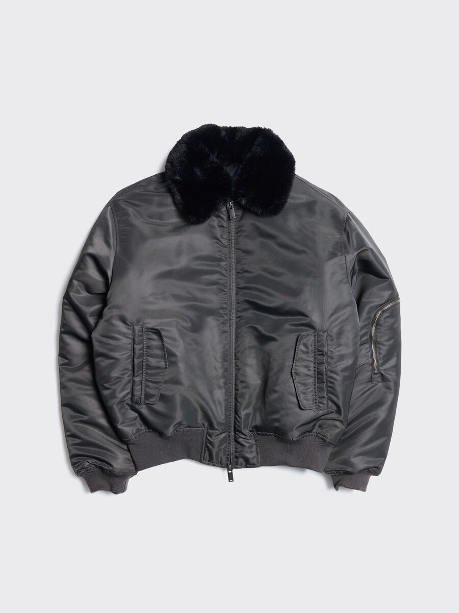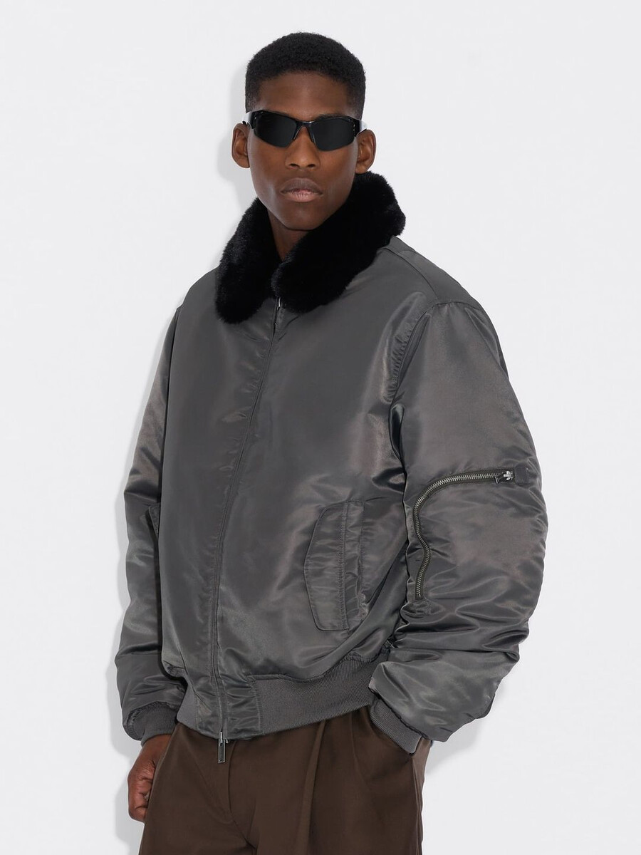 Reb Aviator-jackan är tillverkad av ett glänsande tekniskt tyg som kontrasteras mot en avtagbar krage i fuskpäls. Den har tvåvägsdragkedja fram, framfickor, en ärmficka och ribbade kanter.