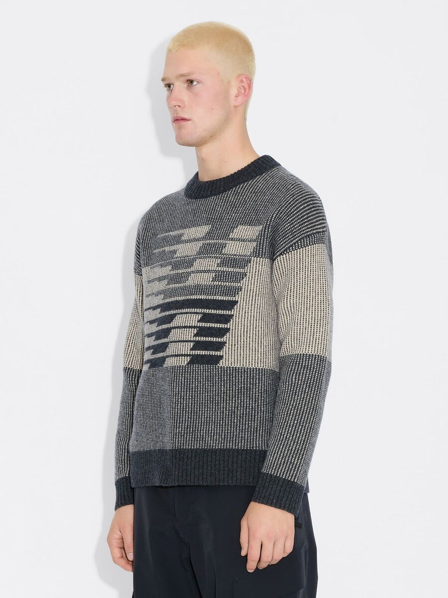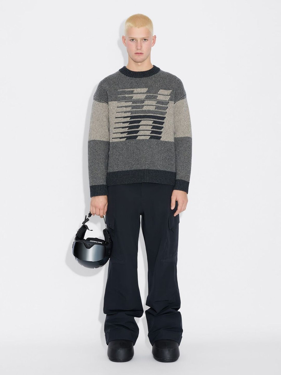 Tröjan Ski Logo är tillverkad av ren randig ull och har rund halsringning, ribbade kanter och jacquard-logotypdetaljer.