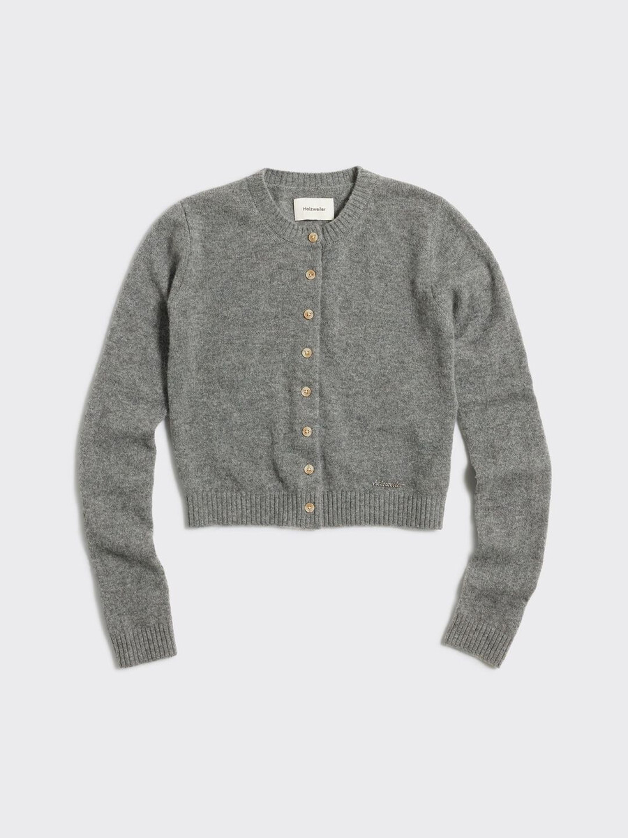 W. Cashmere-koftan är tillverkad av finstickat material och har rund halsringning, knäppt framtill och ribbade kanter.