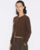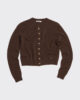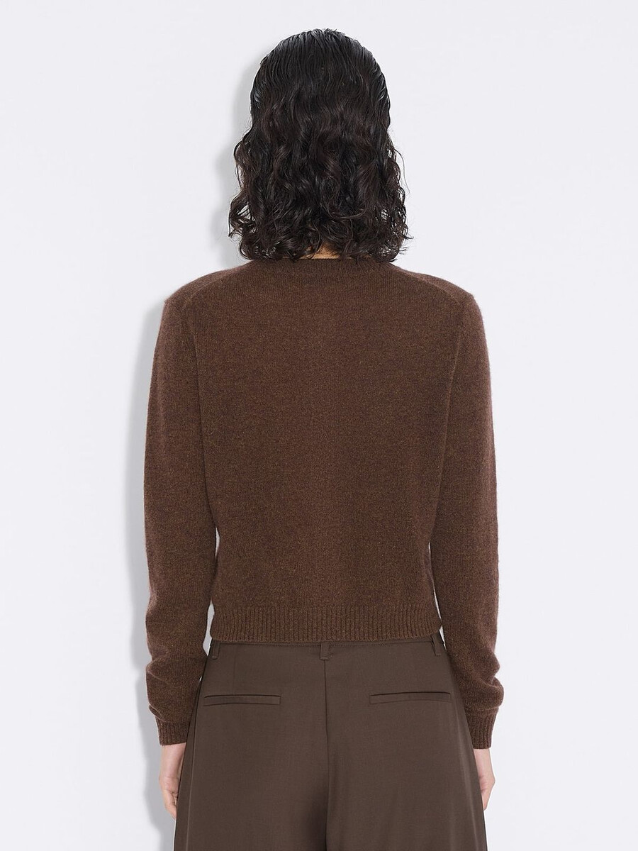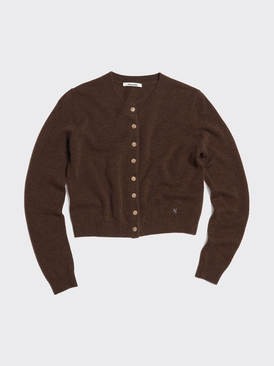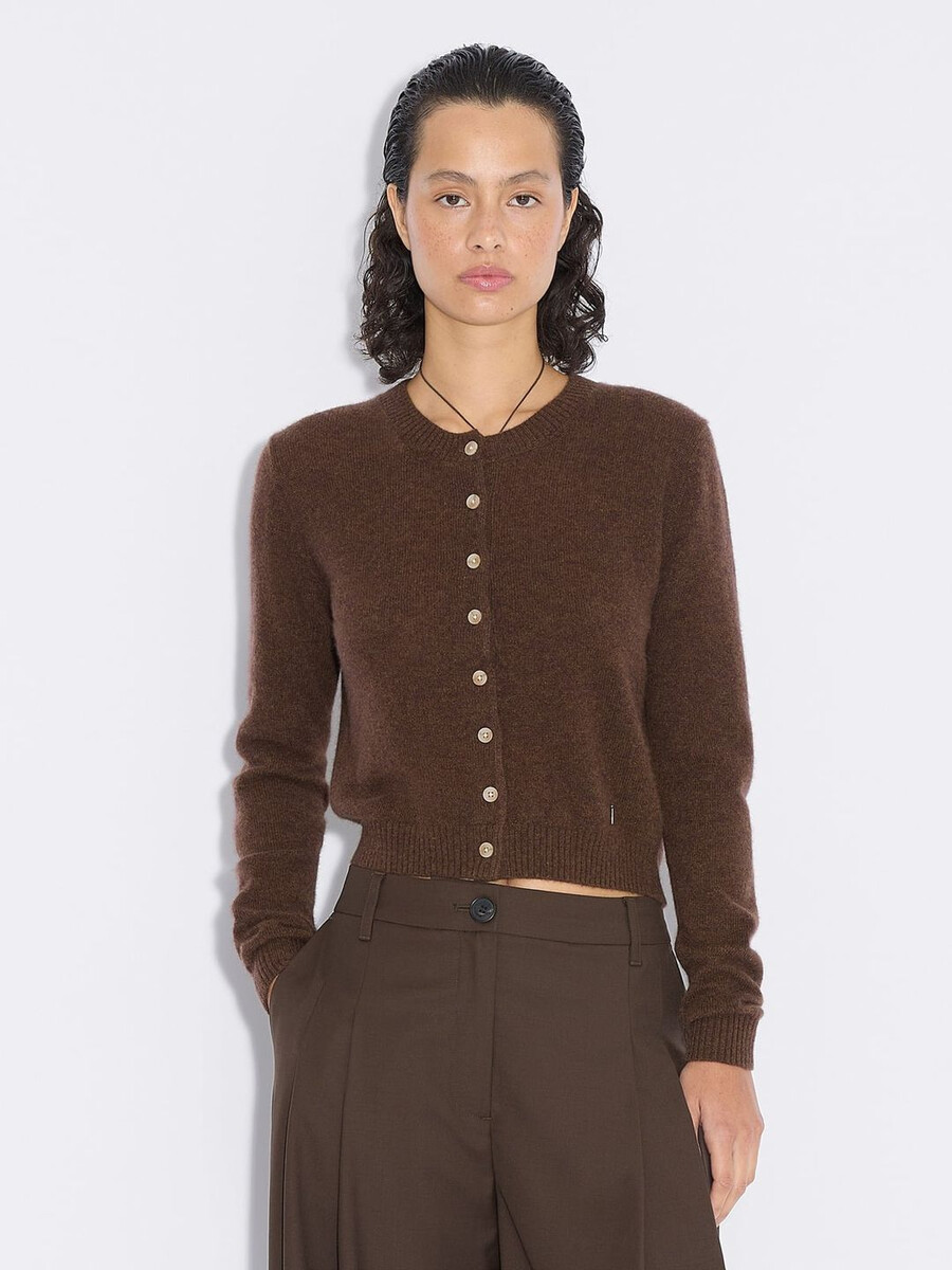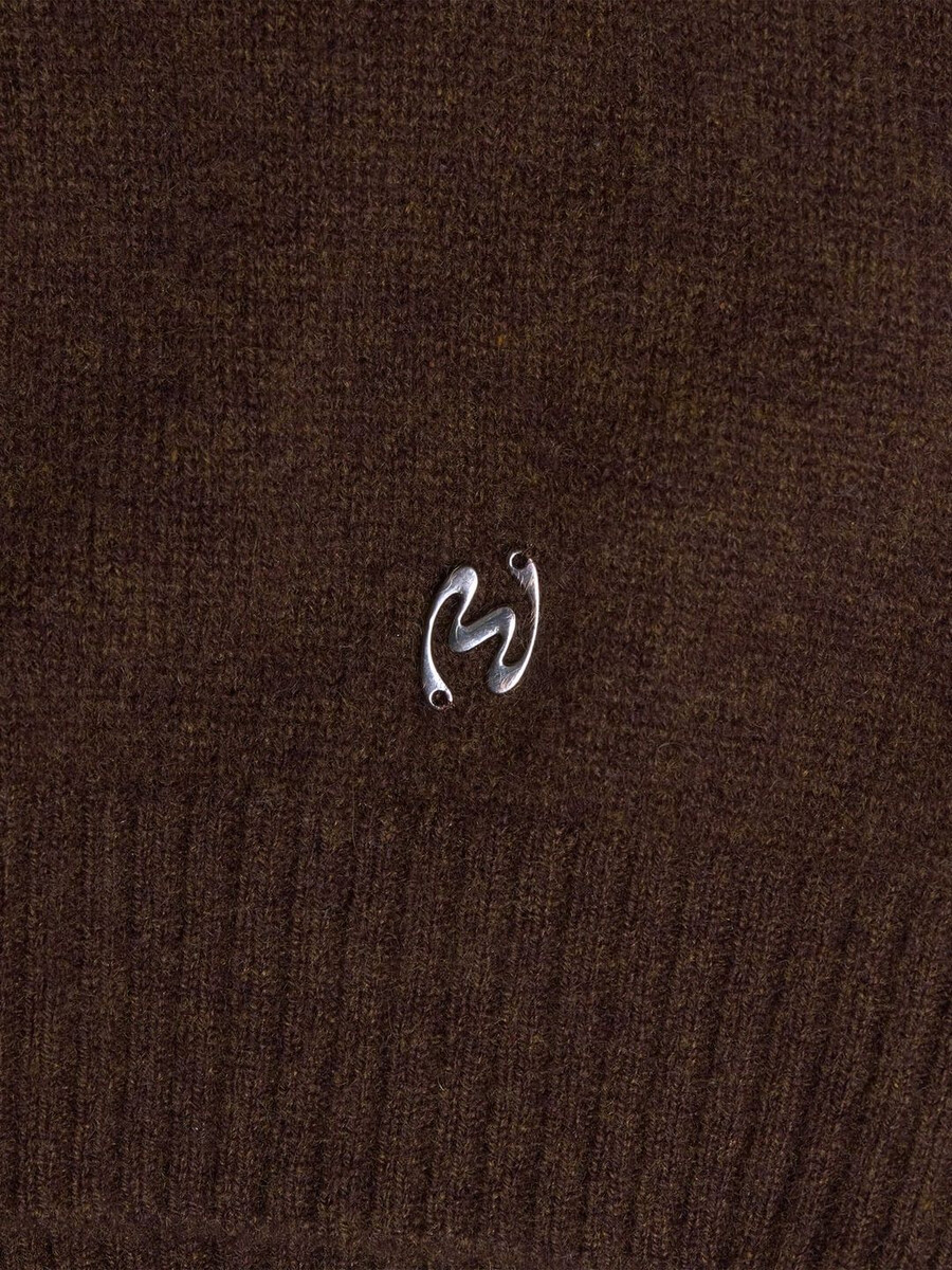 Denna kashmirkofta är tillverkad av finstickat material och har rund halsringning, knäppt framtill och ribbade kanter. Den har en avtagbar metalllogotypplakett ovanför midjan.
