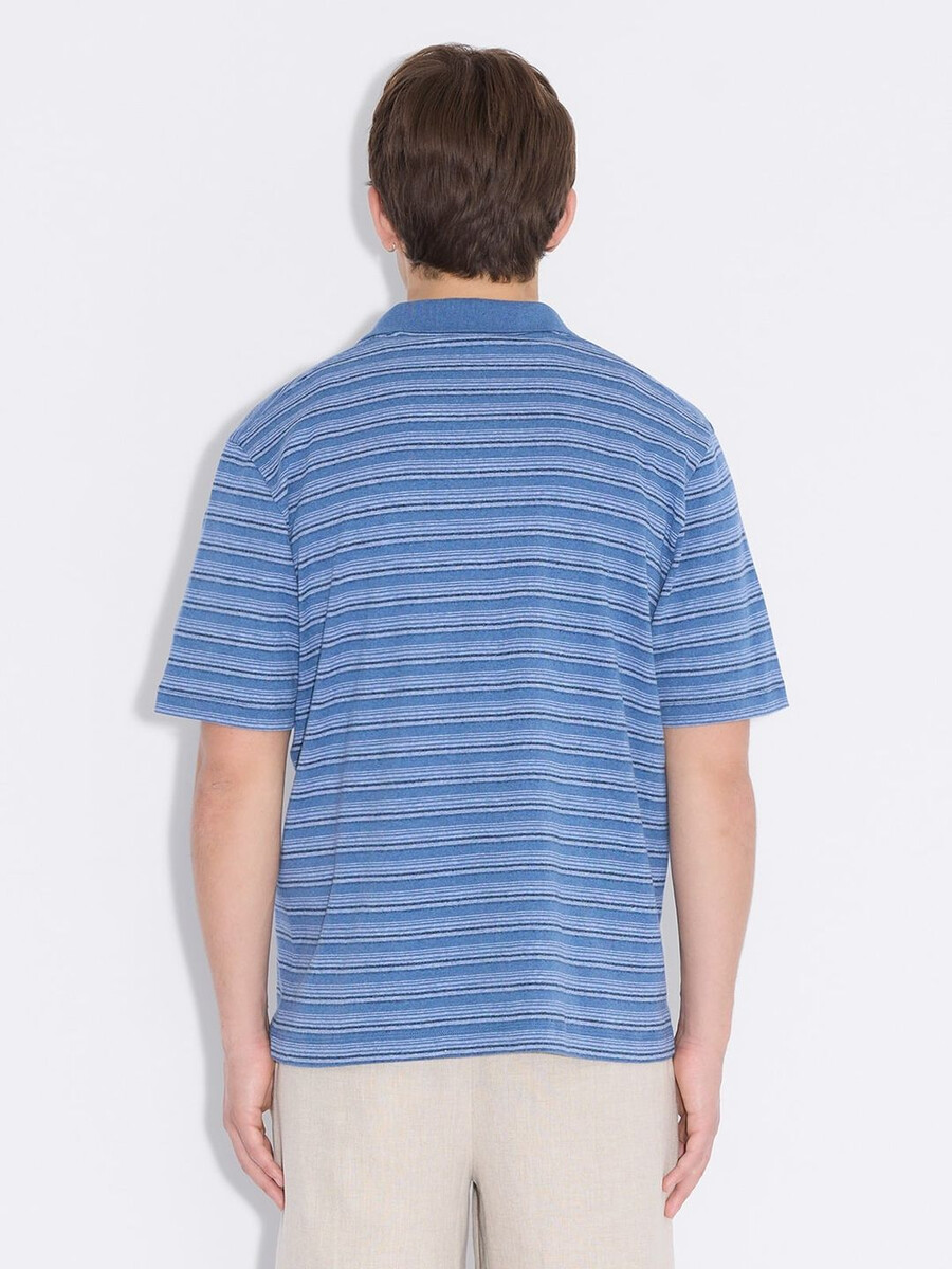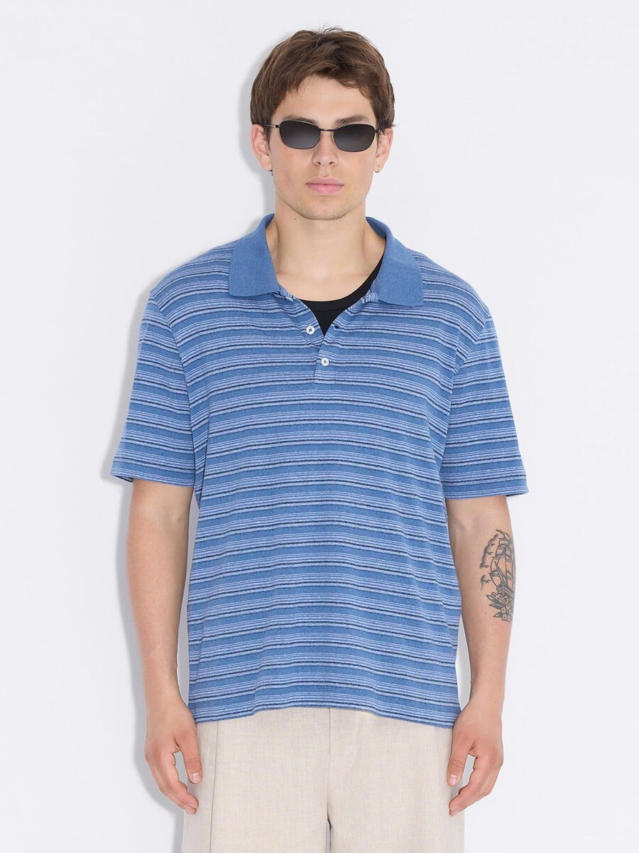 Sonny pikétröja är tillverkad av randig bomull och erbjuder en avslappnad passform, nedsänkta axlar och en klassisk knäppt pikékrage.