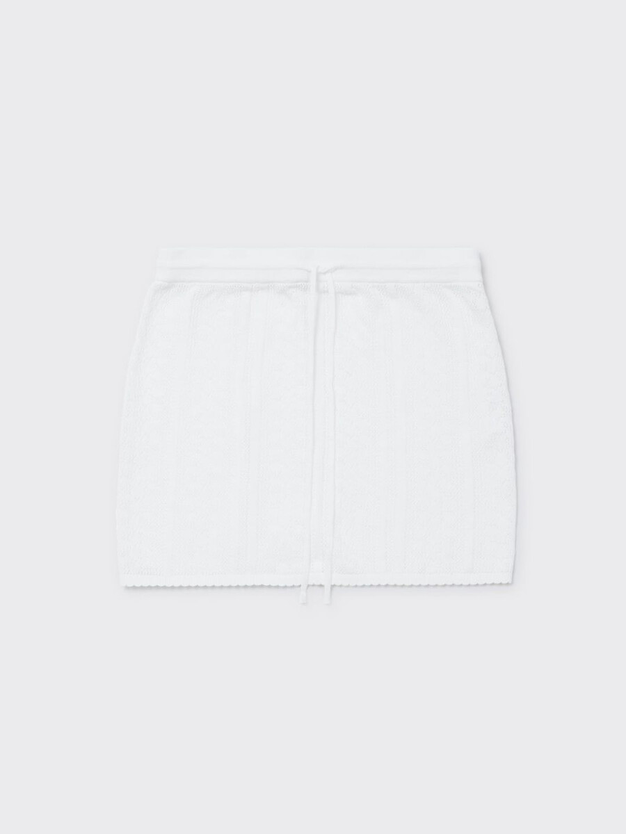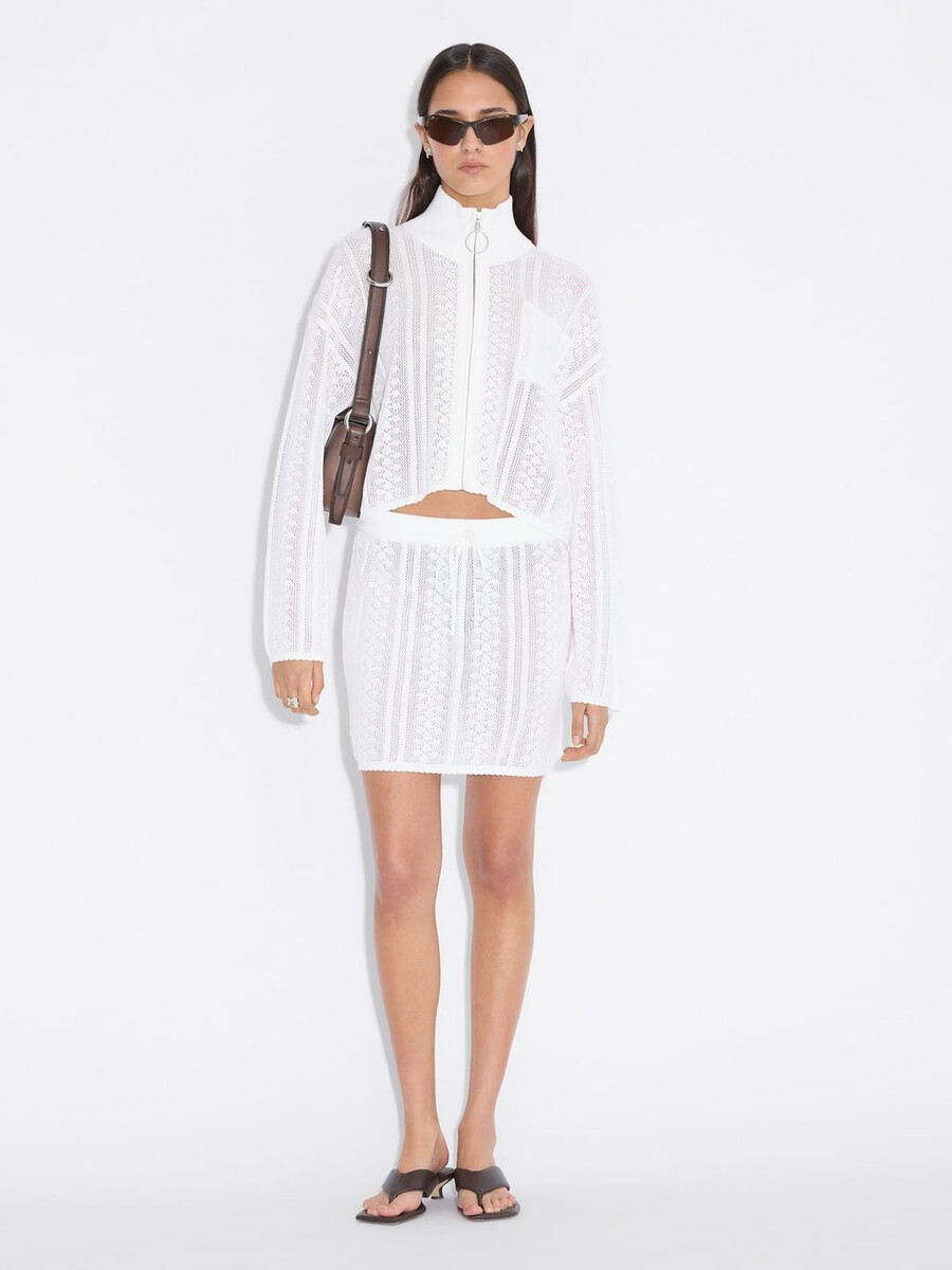 Tine Crochet-kjolen är ett av de senaste tillskotten till vår ständigt växande Tine-familj. Tillverkad av virkad bomull med blommiga detaljer, har den dragsko i midjan och en minilång, vågig fåll. Styla med den matchande Tine Crochet-koftan.