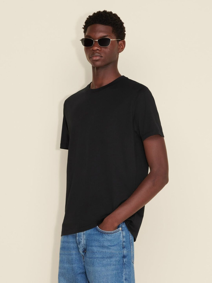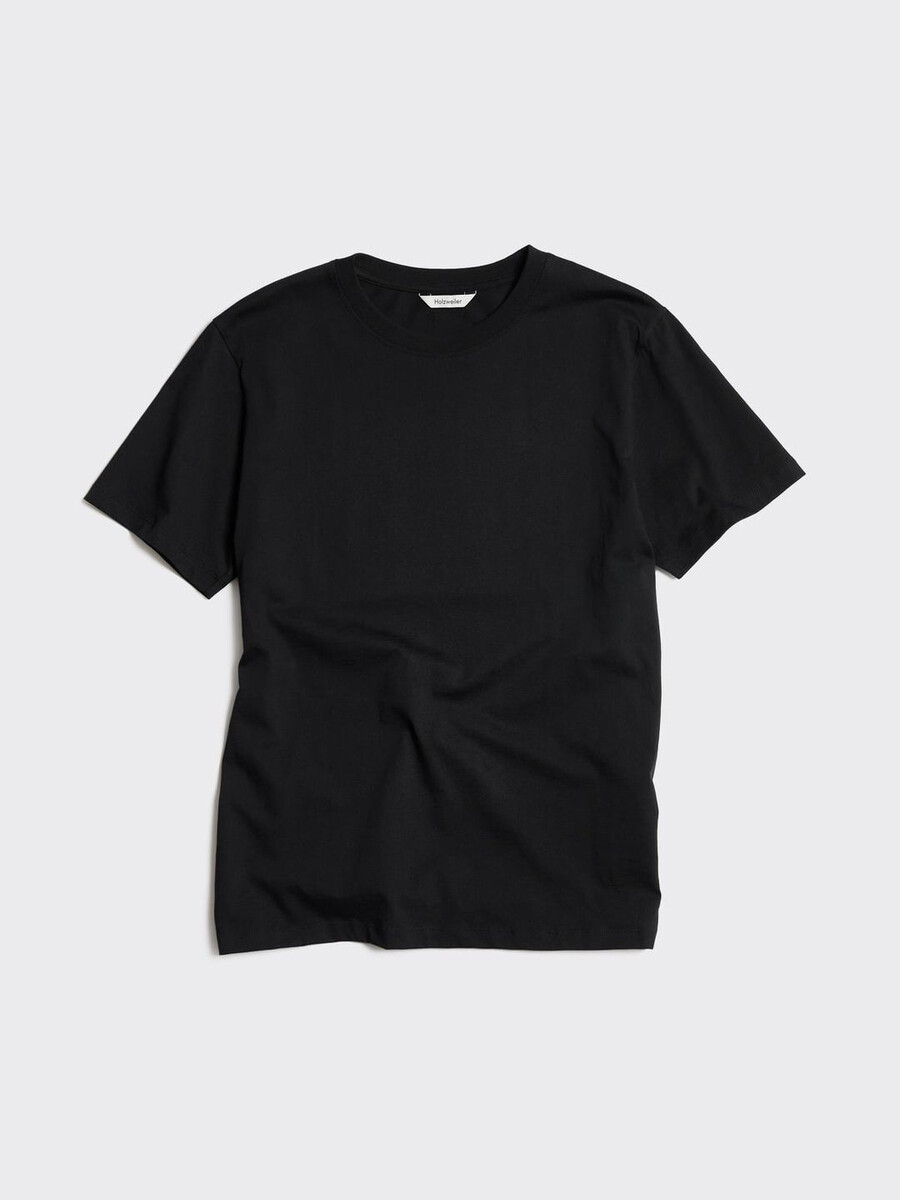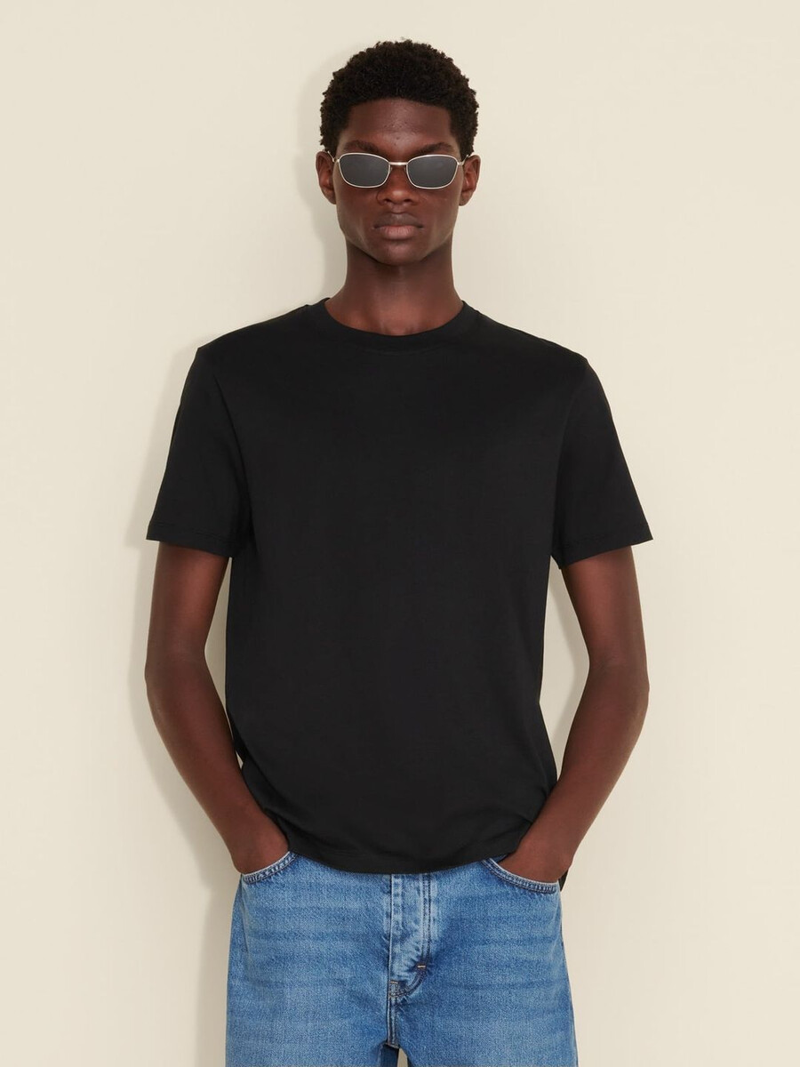 Strukturera alla dina avslappnade looks runt vår Regular T-shirt. Tillverkad av ren ekologisk bomullsjersey, har den en ribbad rund halsringning och logotyp tryckt baktill.
