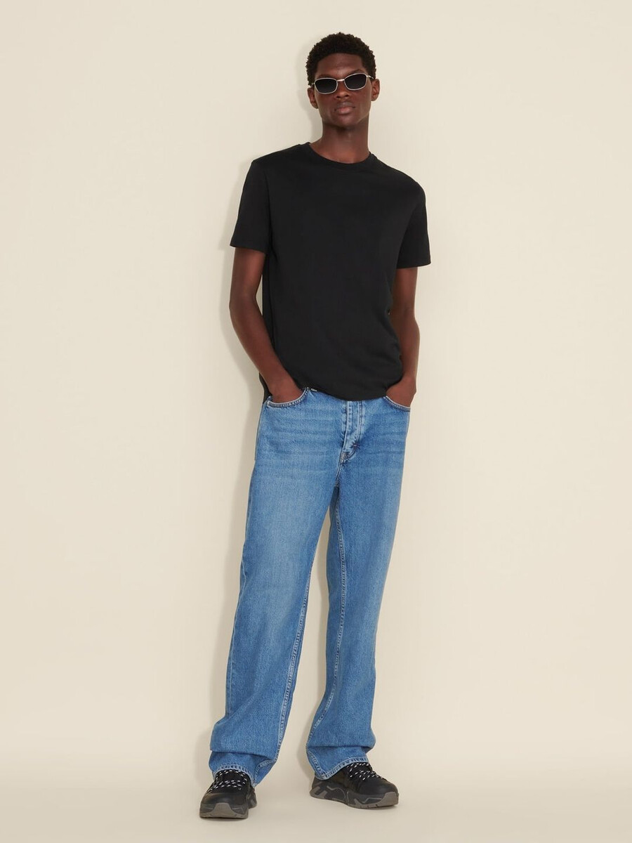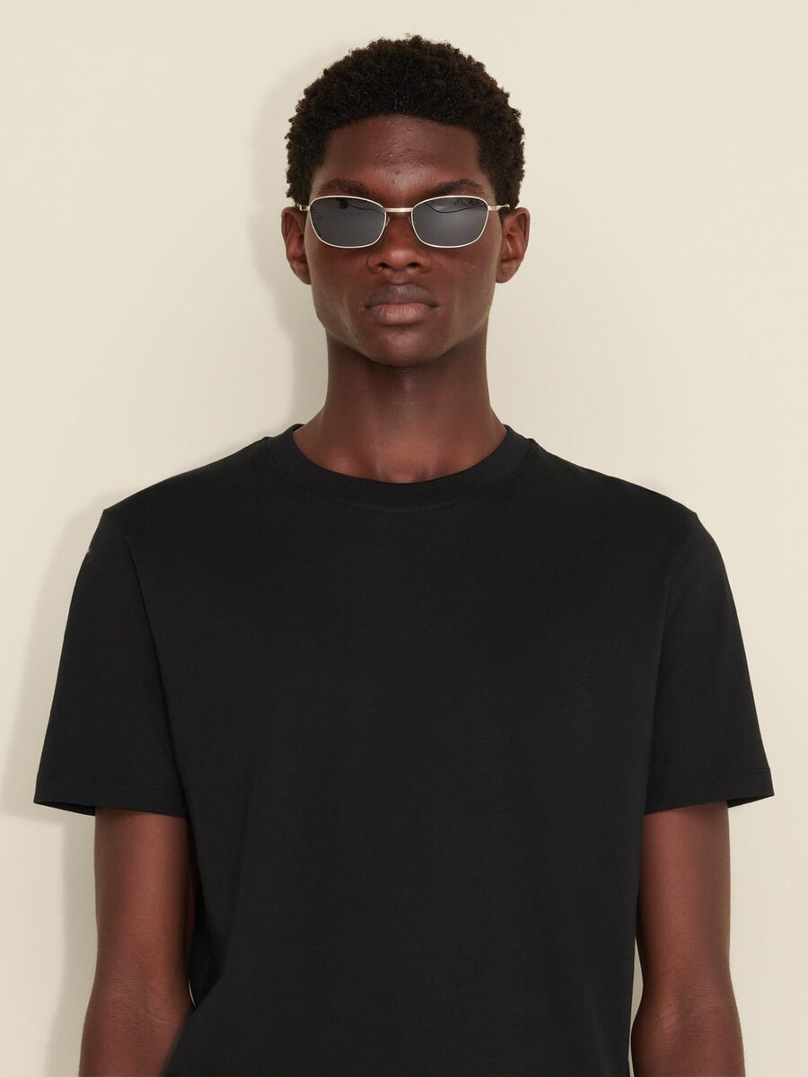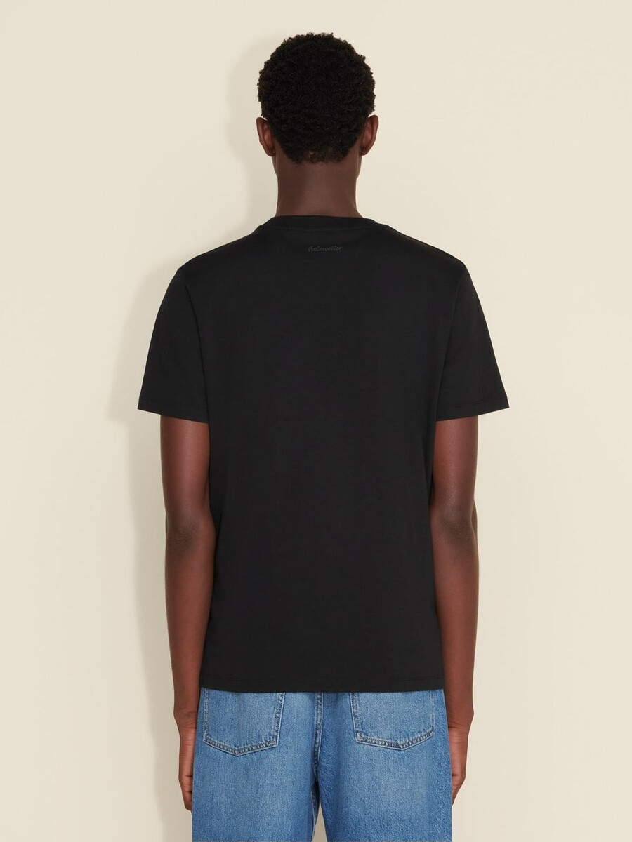 Strukturera alla dina avslappnade looks runt vår Regular T-shirt. Tillverkad av ren ekologisk bomullsjersey, har den en ribbad rund halsringning och logotyp tryckt baktill.