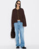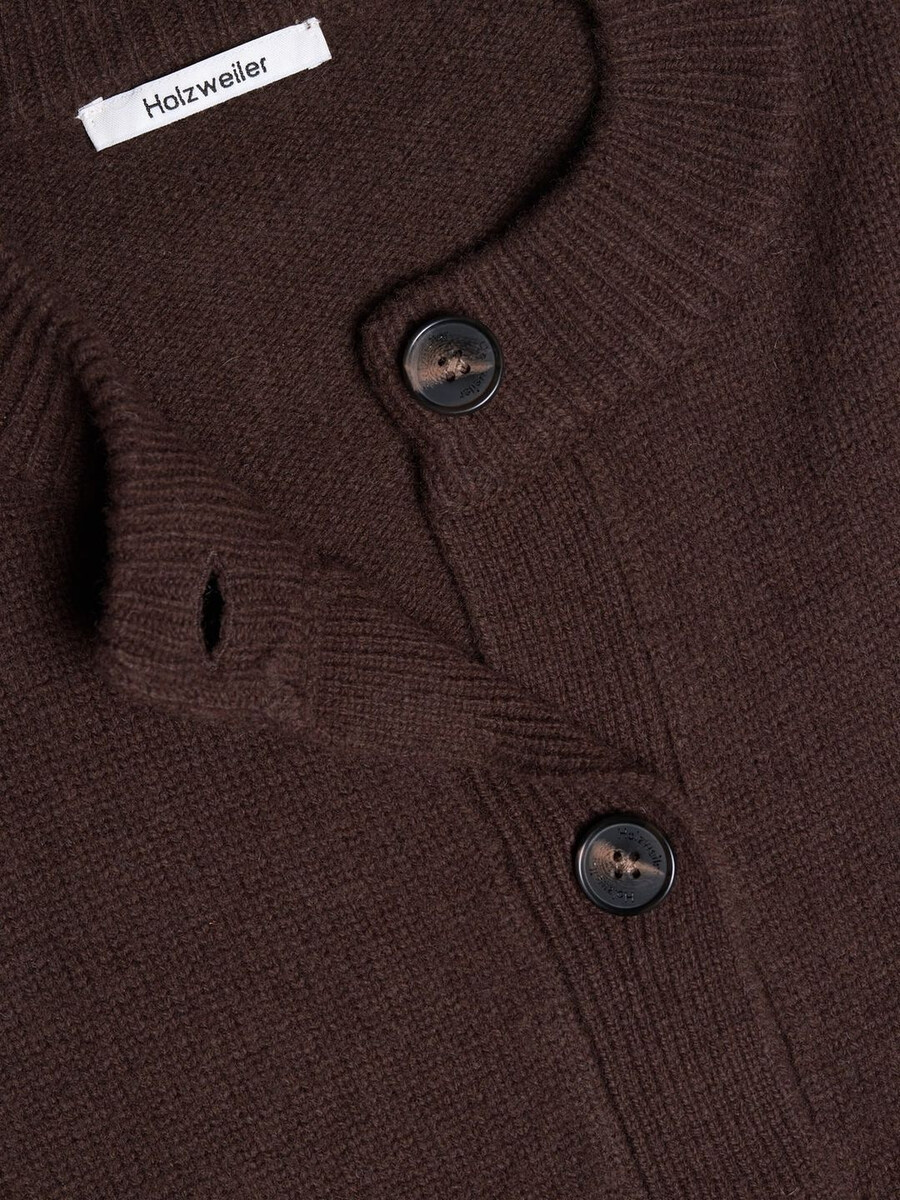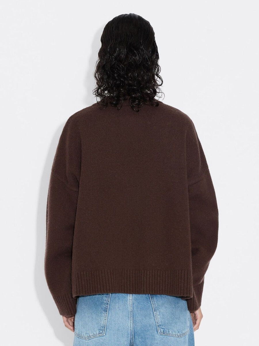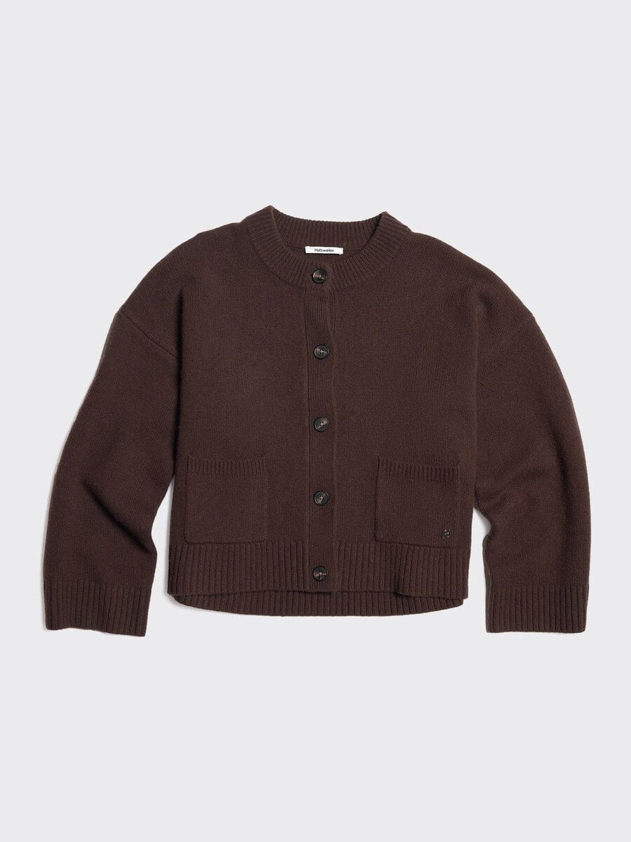 Denna Wool Wide kofta är tillverkad av ren ullstickning och har en minimalistisk design med avslappnad passform, nedsänkta axlar, påsydda fickor och ribbade kanter.