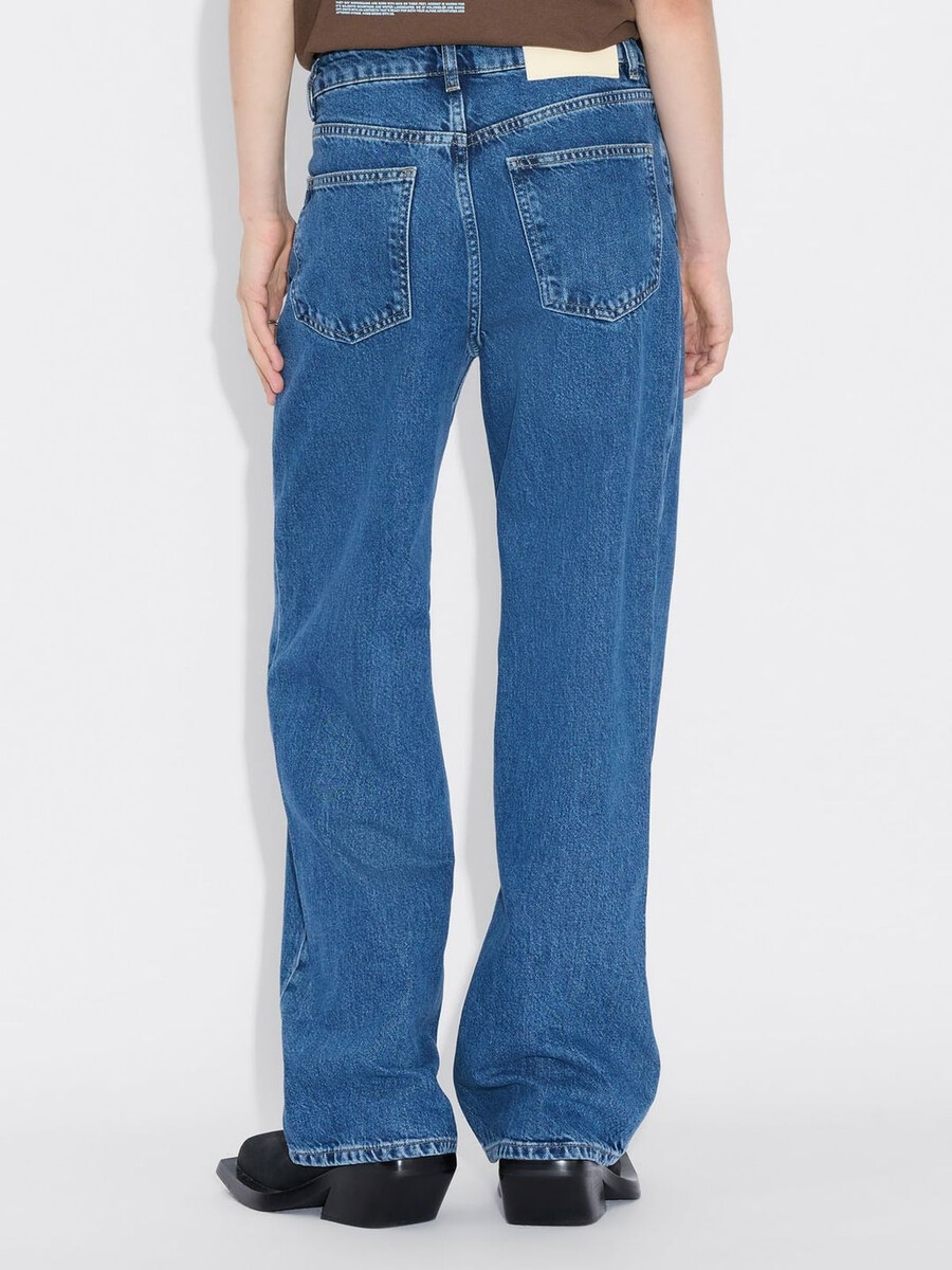 De vida jeansen har fem fickor och är tillverkade av ren ekologisk bomullsdenim. De har hög midja, ton-i-ton H-logotypbroderi på myntfickan och bekväma vida ben.