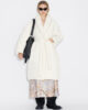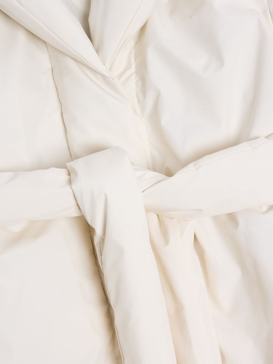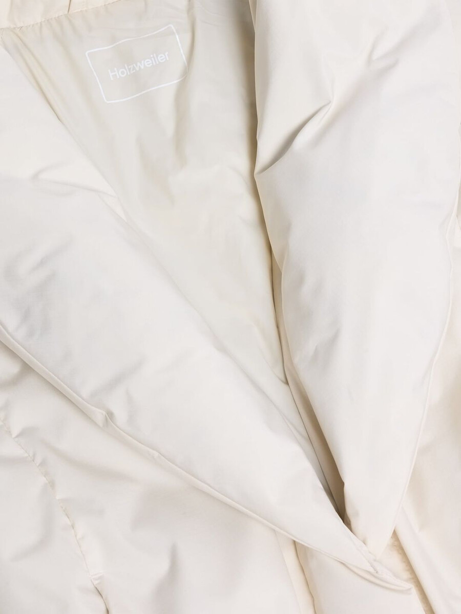 Vikki Long dunjacka har en nedanför knälång fåll som gör den lämplig både för dag och kväll. Den är vadderad med RDS-certifierat dun, tillverkad av ett vattenavvisande tyg och har sjalkrage, raglanärmar, flera fickor, ett självknytande avtagbart skärp och ett subtilt logotyptryck bak i nacken.