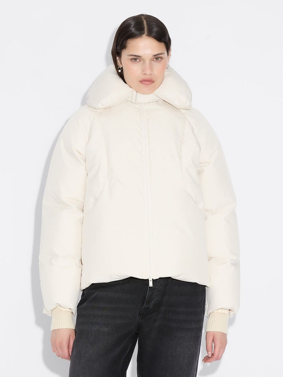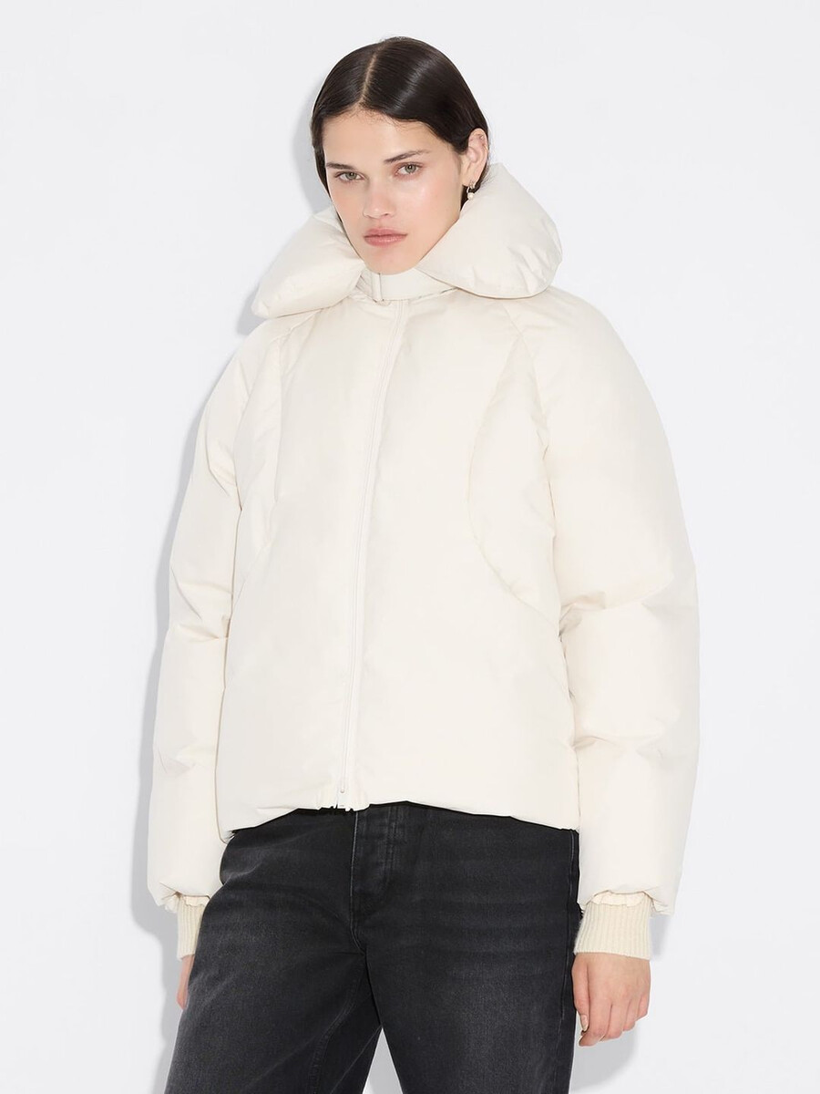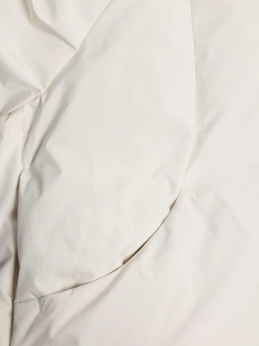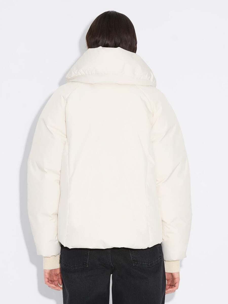 Vår Vikki-jacka har en molnliknande struktur som ger en känsla av lätthet till din kallvädersrotation samtidigt som den erbjuder optimalt skydd. Tillverkad av ett vattenavvisande tyg som är vadderat med RDS-certifierat dun, har den en vadderad krage med justerbar knäppning, tvåvägsdragkedja med varumärkeslogotyp framtill, sidfickor med tryckknappar, åtsittande ärmar och en subtil logotyp bak i nacken.