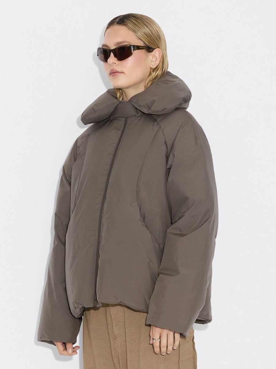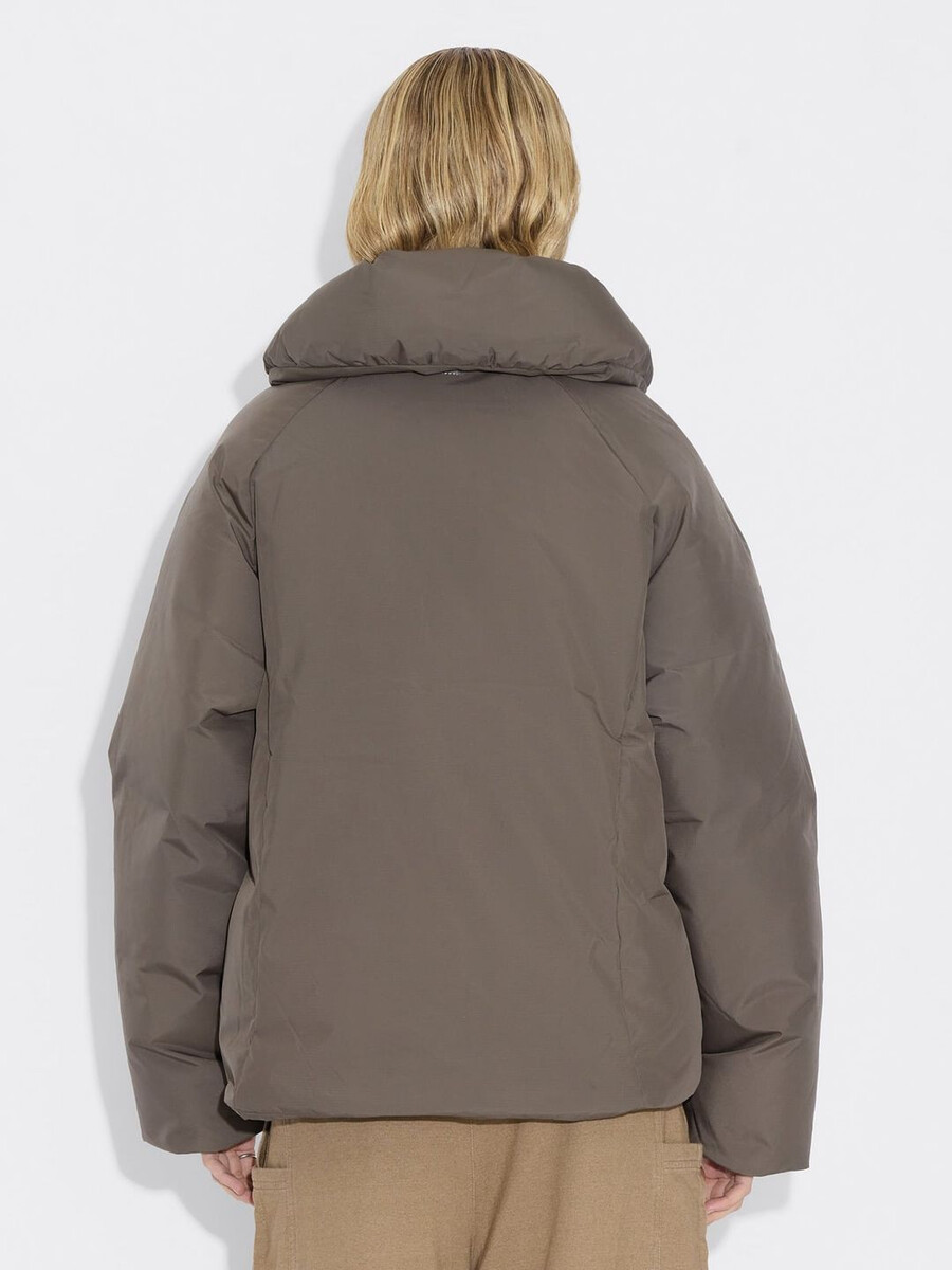 Vår Vikki-jacka har en molnliknande struktur som ger en känsla av lätthet till din kallvädersrotation samtidigt som den erbjuder optimalt skydd. Tillverkad av ett vattenavvisande tyg som är vadderat med RDS-certifierat dun, har den en vadderad krage med justerbar knäppning, tvåvägsdragkedja med varumärkeslogotyp framtill, sidfickor med tryckknappar, åtsittande ärmar och en subtil logotyp bak i nacken.