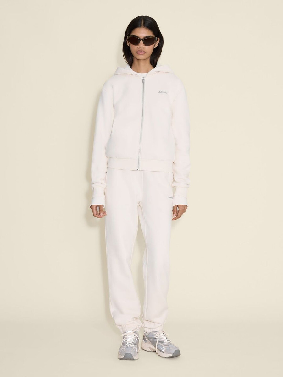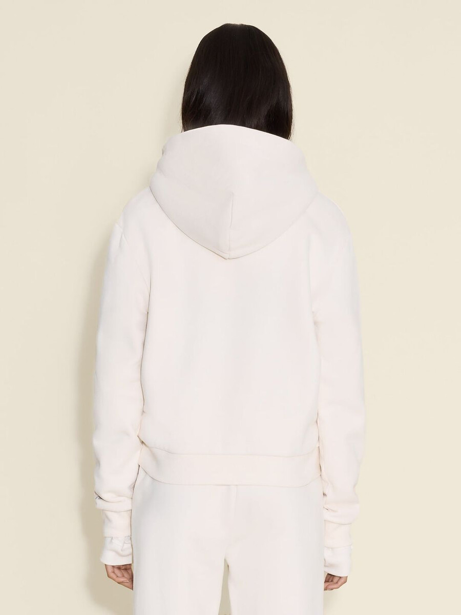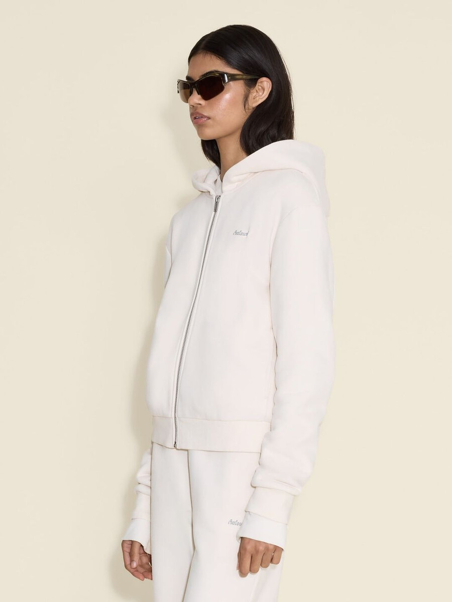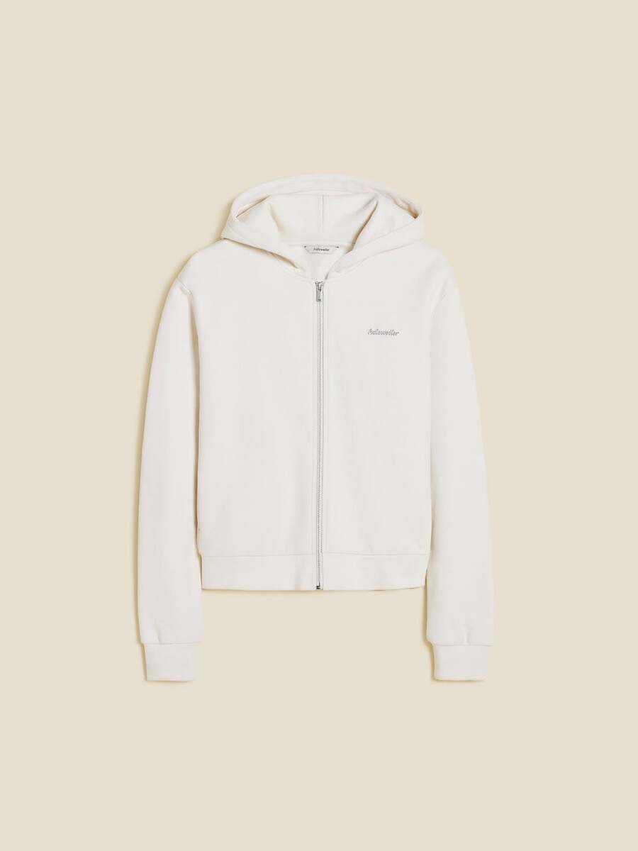 W. Regular Zip-hoodien är tillverkad av en andningsbar ekologisk bomullsblandning med isolerande ribbade kanter. Den har normal passform, dragkedja framtill och en känguruficka.